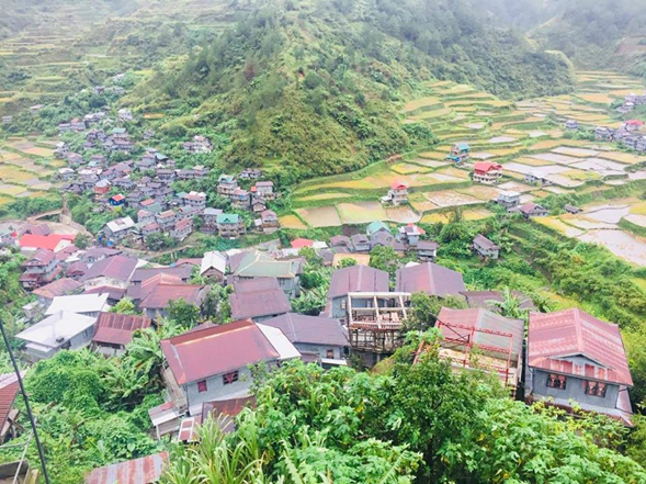 After several minutes of enduring the way down, I caught up with the lead group in the rice terraces portion of the trail. They were pretty shocked how fast I caught up to them. They were posing for pictures in the middle of the rice terrace-trail where they could seriously fall down if they weren’t careful. All of us had our knees shaking just by standing on the terraces. Before entering Barangay Macalana, we waited for the others to catch up. It was around 4 in the afternoon. We took pictures and had our rest. When almost everyone caught up, we made our way to Barangay Macalana and climb (again) the stairs going up to the municipal hall.