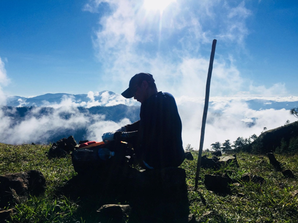 This was probably the longest rest I had during a hike. The morning dew, the sunrise breeze, the spectacular mountain views were all worthy of seeing for a significant amount of time. We continued our hike towards the ridge. The sun was now up, the sky was blue, and the clouds, although far, were around us. The heat of the sun was getting in our system as we tread along. The hike towards the second peak, Gungal Rock, was a long one. We had a lot of rest stops in the middle of the trail with no sun cover. No tall grasses, no pine trees, just a dusty and somewhat rocky footpath were presented to us as we went along with the hike. We reached Gungal Rock at around who-knows what time it is. That was sort of exhausting. Cool breeze who?