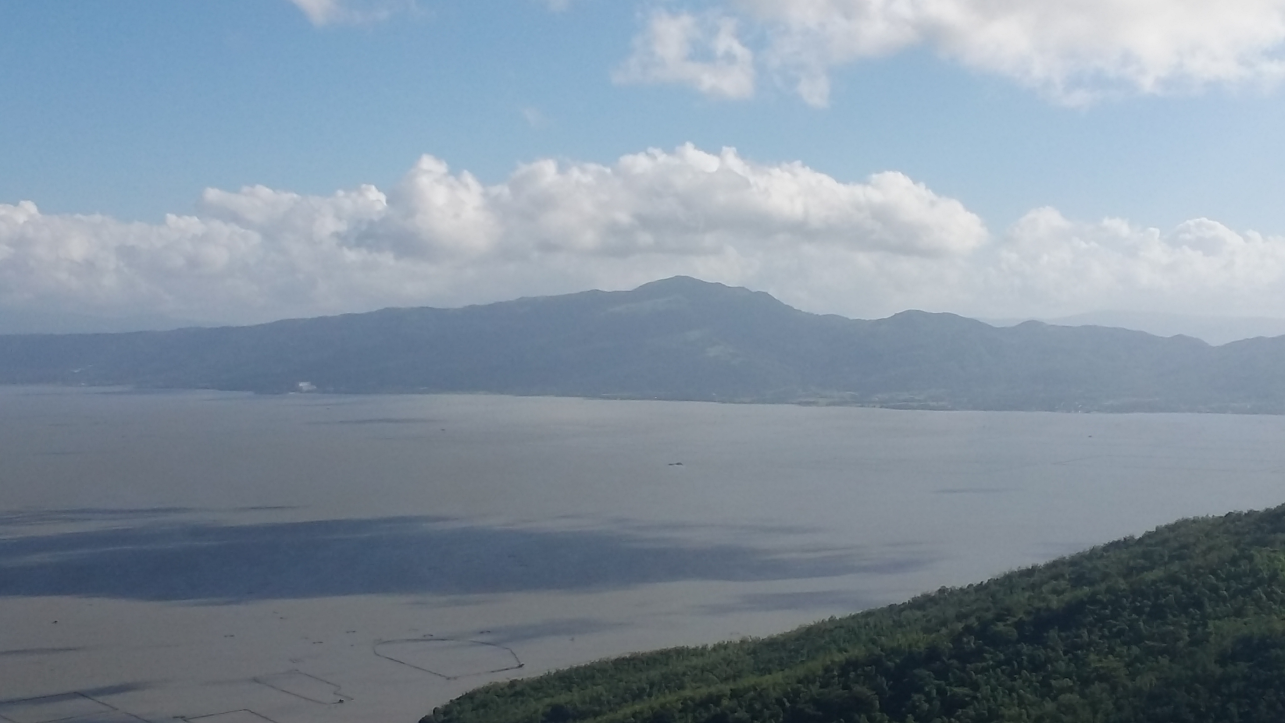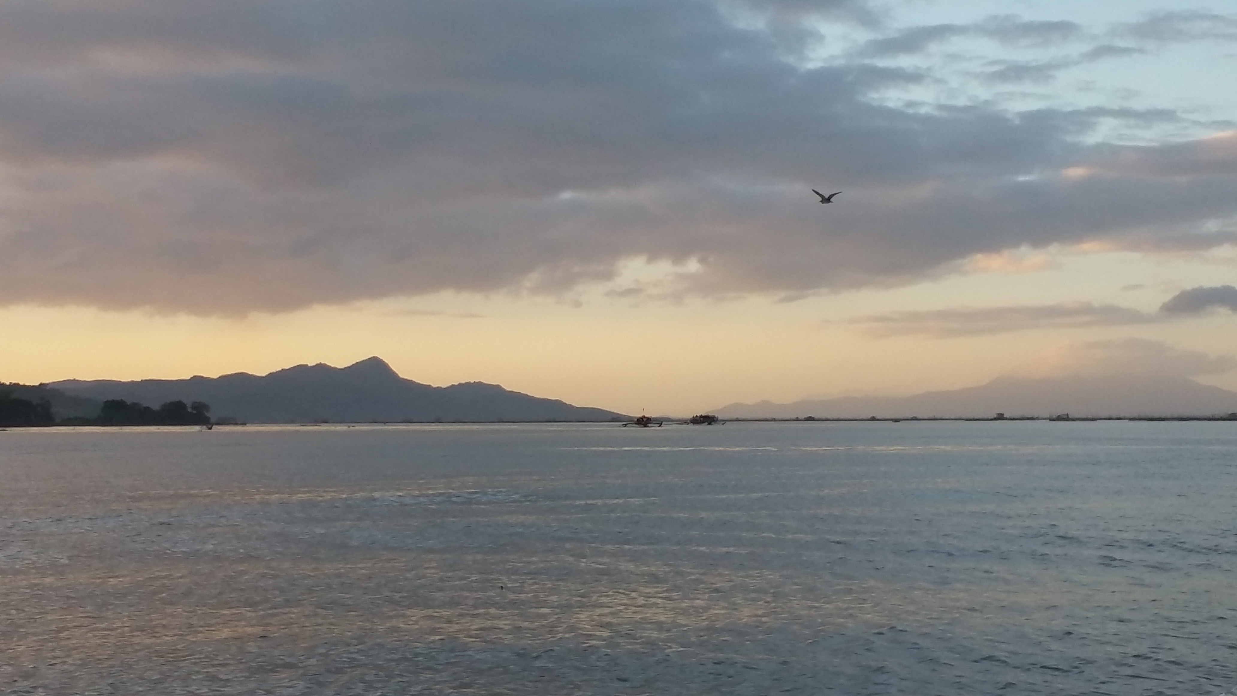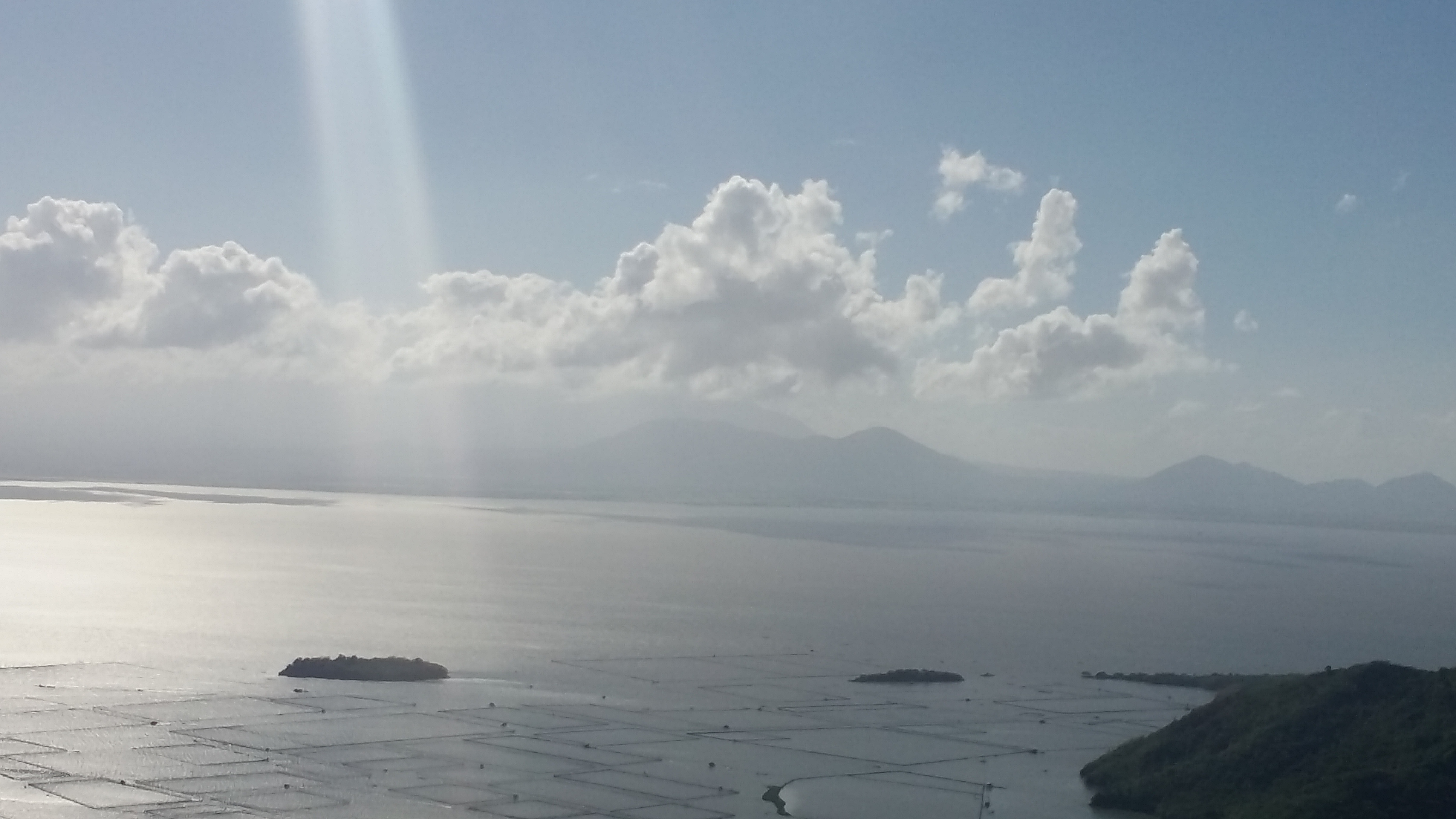 JM and I left Malolos at around 3:30 in the morning and caught a Pasay-bound bus. We got off at Shaw Boulevard at around 5 in the morning and rode a Binangonan-bound UV Express. Arriving at Binangonan at around 6 in the morning, we rode a tricycle going to Binangonan port which only cost us 20PHP! We were a bit shocked with how cheap the ride is. That would have cost us 50-70PHP in Malolos. Anyway, we rode a boat going to Talim Island. The boat was huge. There were at least thirty of us in the ride, plus stacks and stacks of vegetables and fruits and other market goods. We left at around 6:30 in the morning. The morning breeze can be felt as our boat moved towards Talim Island. The pointy peak of Mt. Tagapo can be seen at its southern portion. To its right, the gigantic Mt. Makilng can be seen, as well as Mt. Maculot from afar.