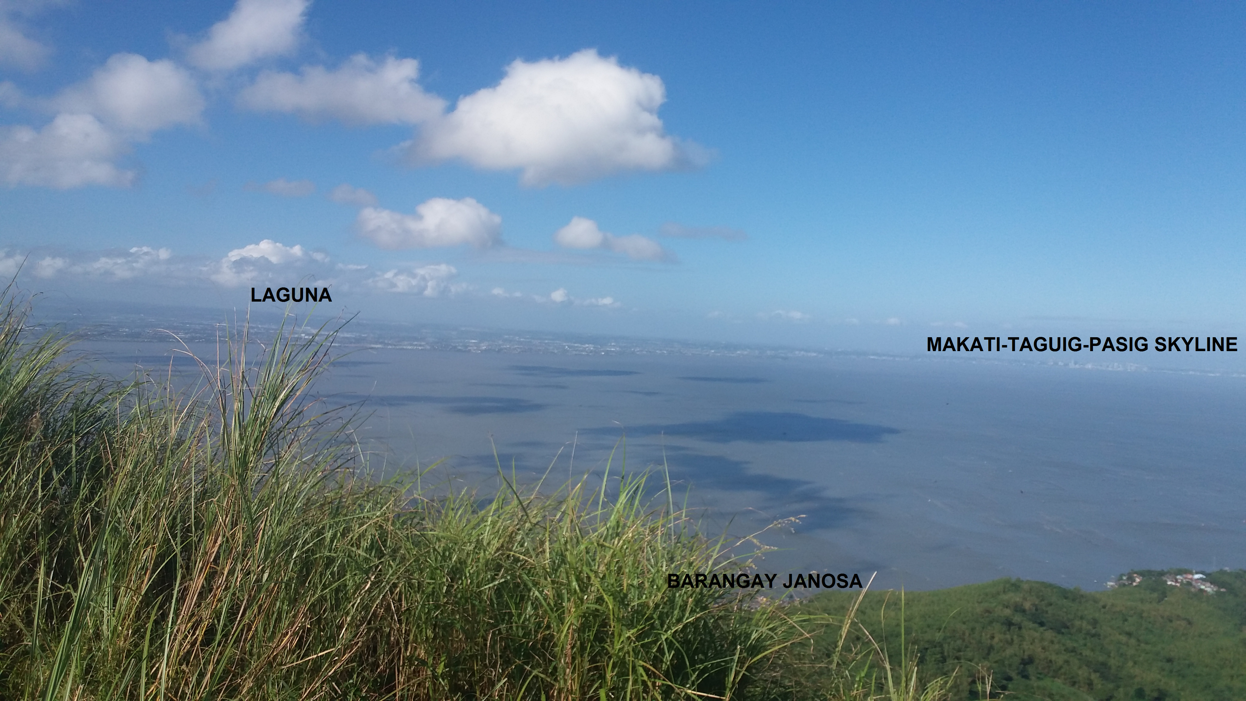 We savored our time atop of the summit. The site had a 360-degree view of the surrounding. To our north are the rest of the grassy slopes of the summit and the kubo, as well as the northern stretch of the island. Binangonan can also be seen behind Laguna de Bay. Behind Binangonan are the mountains from Tanay, Rizal, in which Mt. Irid and Mt. Tukduang Banoi towers from afar. To our west and northwest, Makati’s skyline can be seen from afar, as well as the fields of Laguna and southern Metro Manila behind Laguna de Bay. Barangay Janosa can also be seen below.