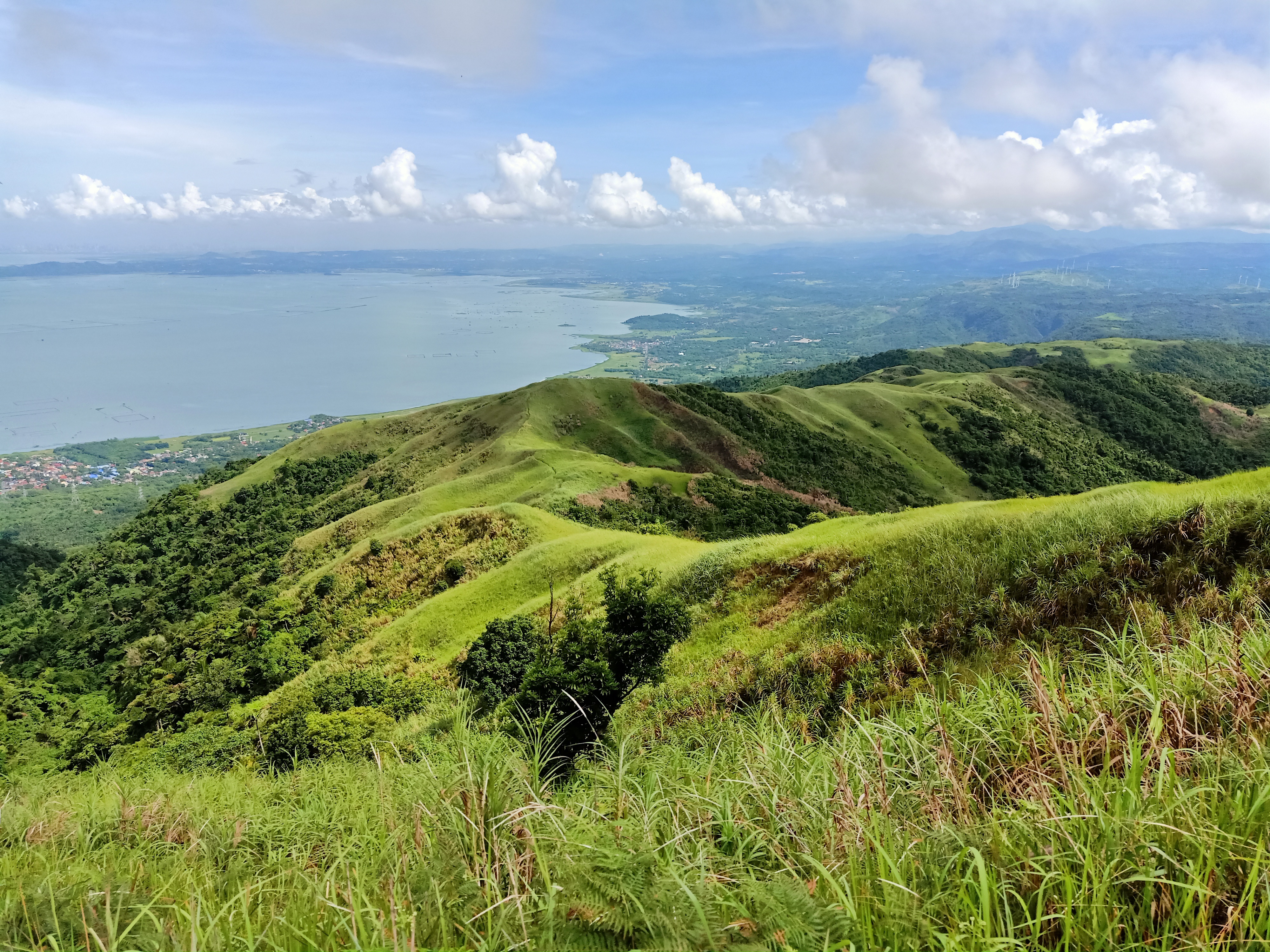 Arriving at Peak 1 or North Peak (650+ MASL) at around nine in the morning, we rested and enjoyed the beautiful views. At our front is Laguna de Bay, with Talim Island in its middle. The grassland summit of Mt. Tagapo in that island can be spotted. Behind it is the province of Laguna, and to our left is Mt. Makiling. Tagaytay Ridge can also be seen from afar. To our right (north) is the rest of the Rizal province. There, we spotted the famed Pilillia Windmills. Behind those are the mountains of Tanay, Rizal.
