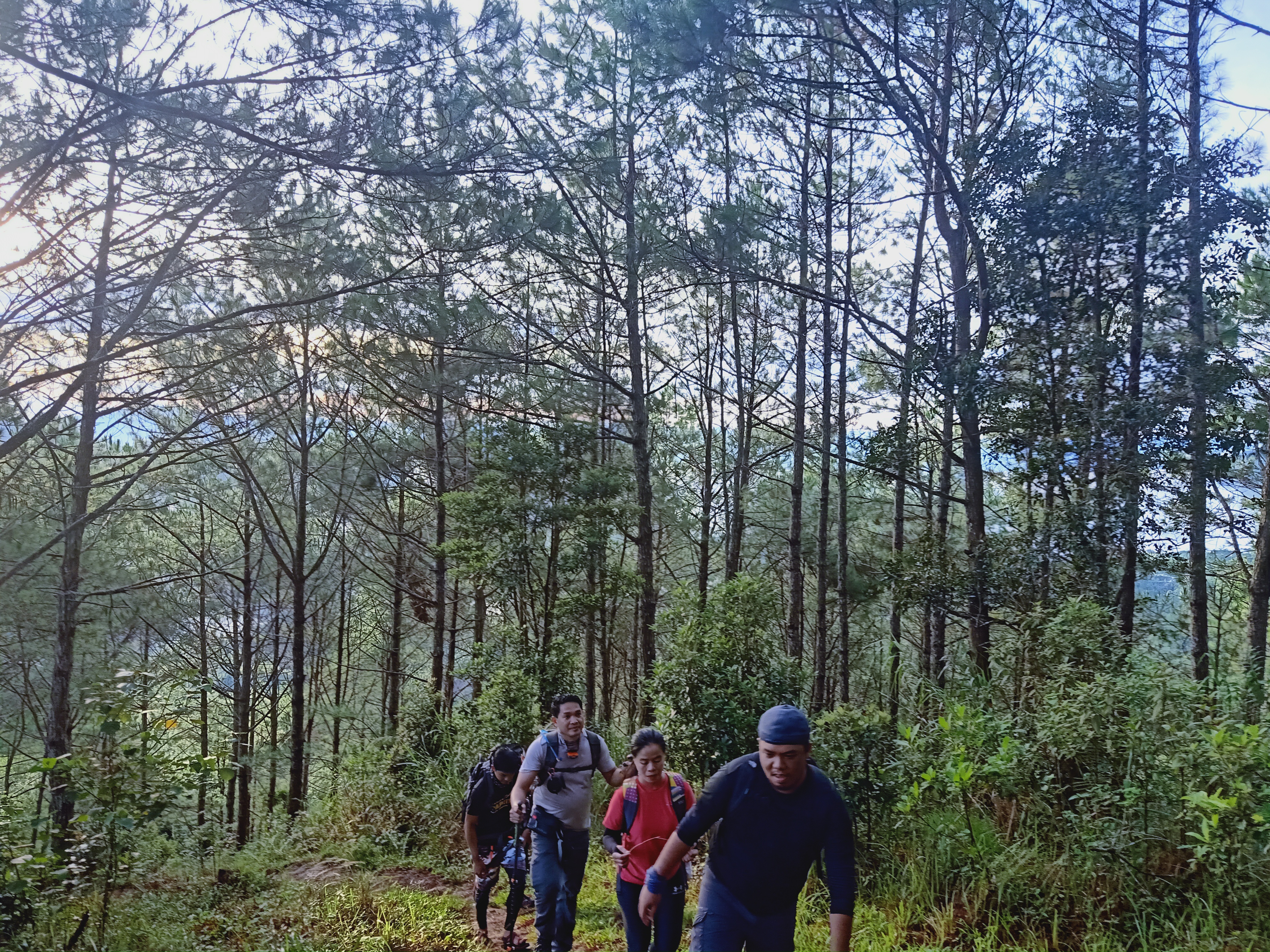 Considering that it was nearing one in the afternoon, the eight of us decided to descend and not wait for the three other groups lagging behind. Since I was in charge of communication, I radioed our coordinators that we would start descending, waiting for their blessing. Good thing though that they approved. We marched on and descended on a mossy forest once again. The four fastest hikers speeded up, leaving me, Doc Israel, Sir Kent, and JM behind. The forest, then, transformed into what seems like giant-bonsai trees until exiting towards the pine forests.