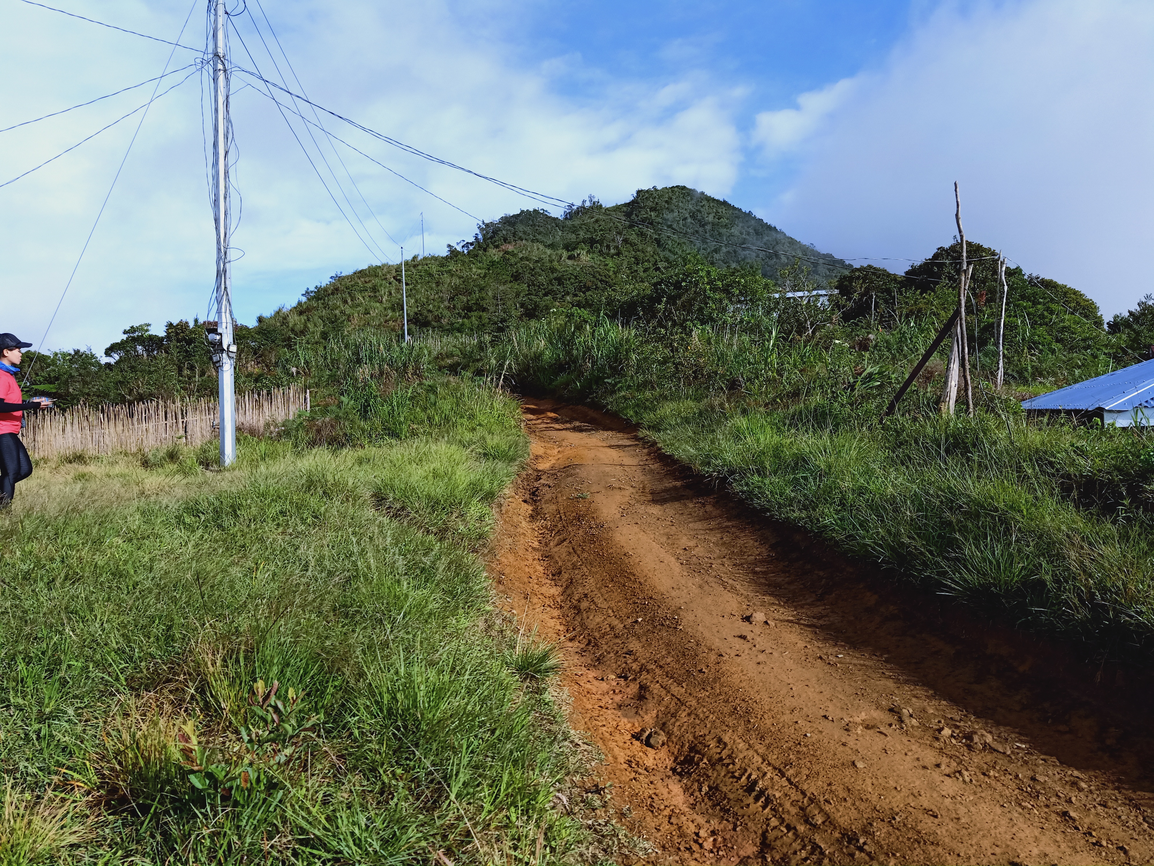 We continued the hike going to Domolpos after a relaxing rest at the view deck. There, the long dirt road continues to stretch for kilometers. The dirt road, then, ends at an open area. There, we made a left turn towards a gated trail, where the footpath is constantly descending. A nearer view of villages can already be seen at this point, meaning that we were near Domolpos. We reached the village at ten in the morning. There, we had our rest and refilled our water bottles before starting the (supposedly) one hour assault going to the summit.