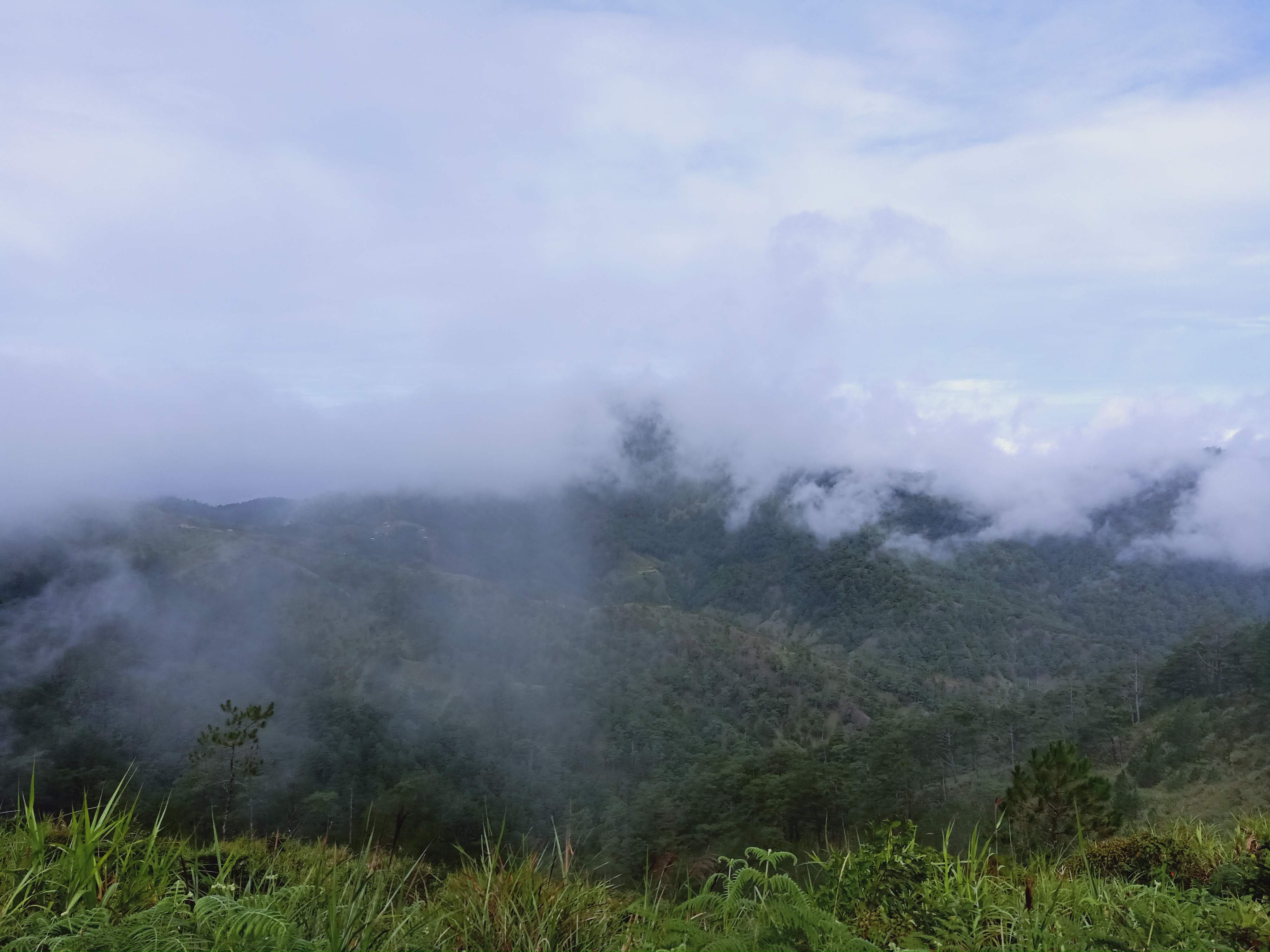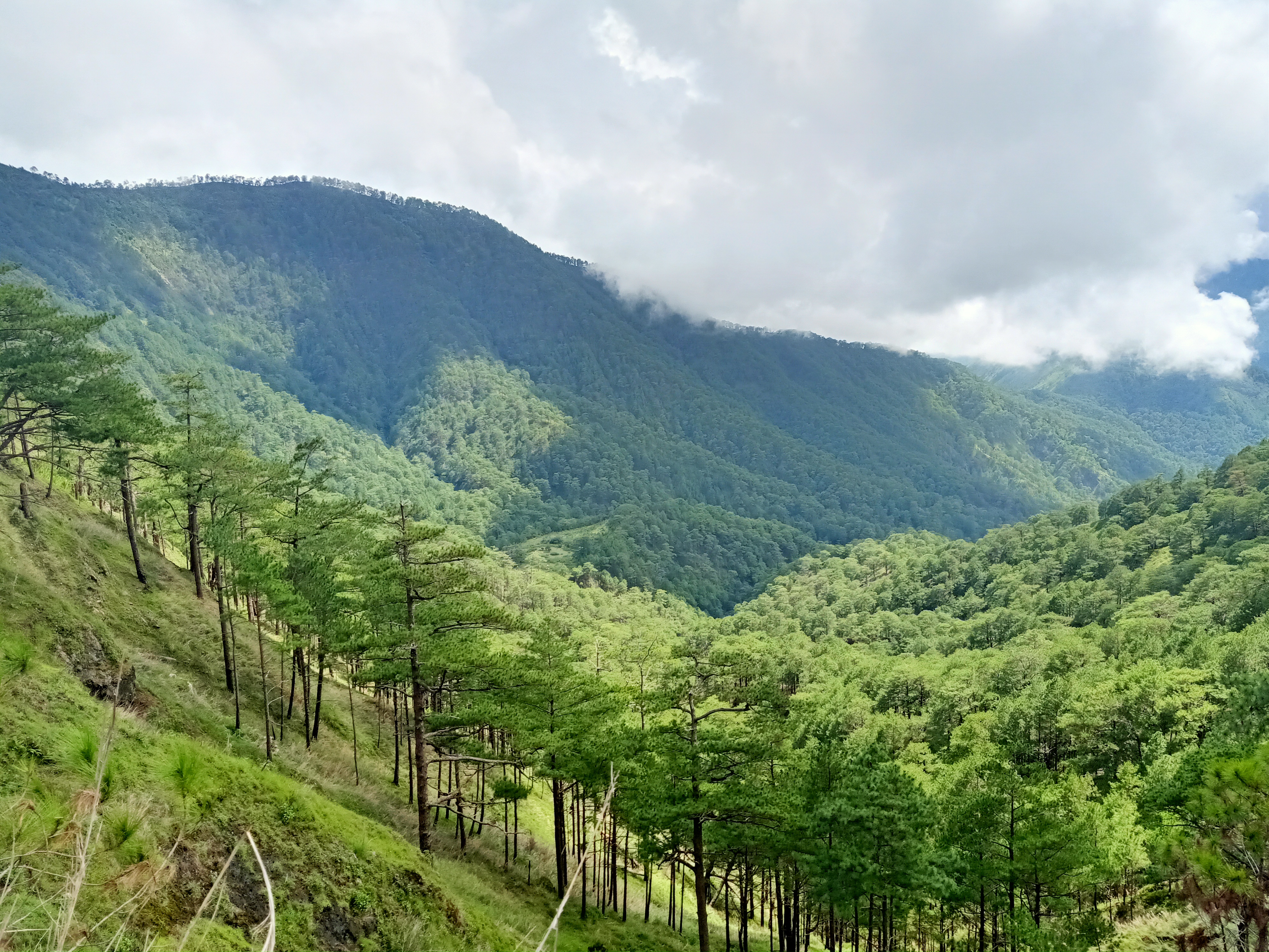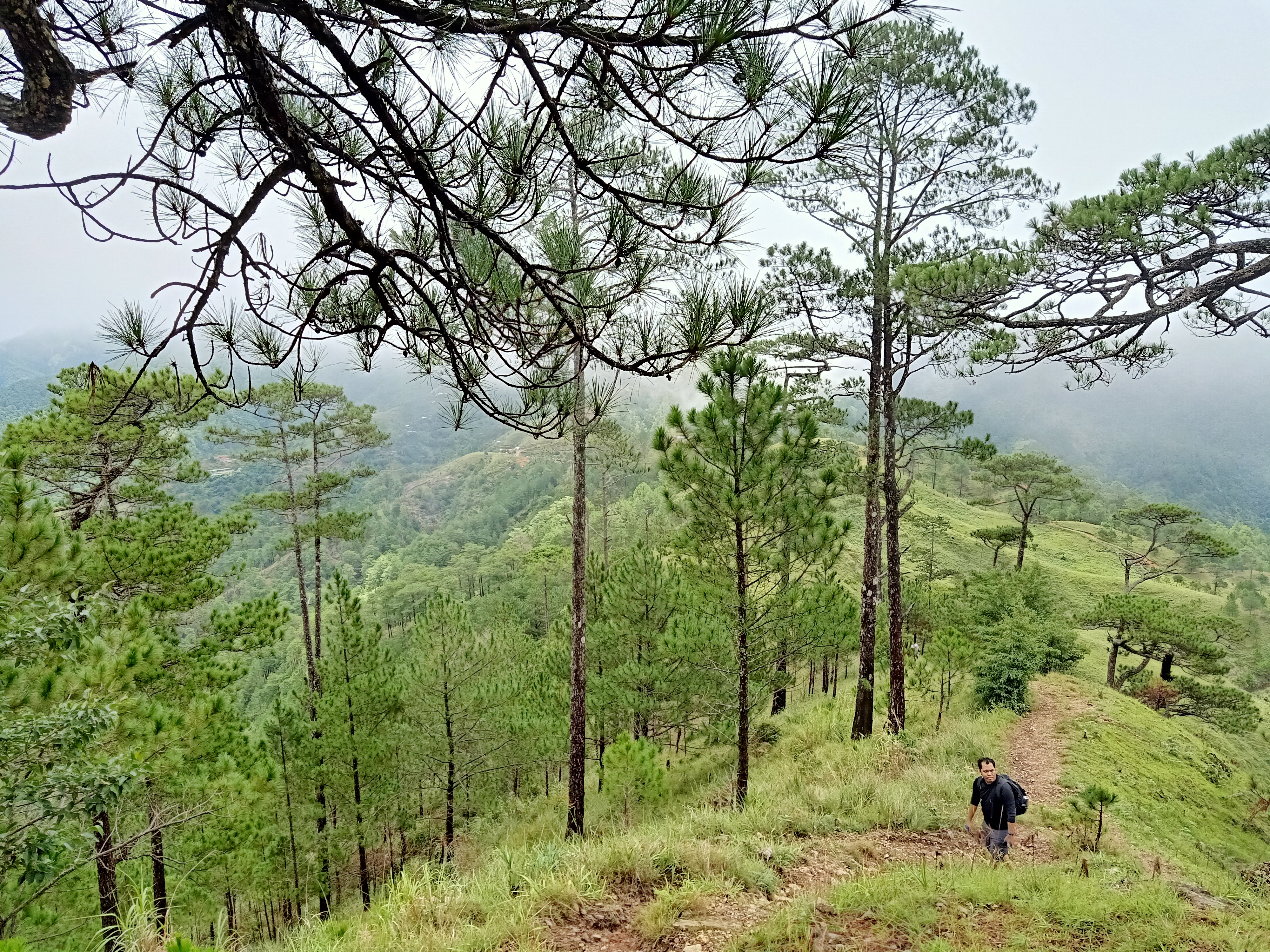 As we gained more elevation, the mountain reveals different sceneries of pine forest slopes. I was actually thanking the heavens for the foggy envelope, as it would look like it would be a scorching ascent if it was sunny. Going higher up on the slopes, a commanding view of the village to our right below can be seen, as well as the mountains we passed through going from Indupit village. To our left are the majestic pine forest slopes and the southern Cordillera mountains stretching infinitely in the horizon.