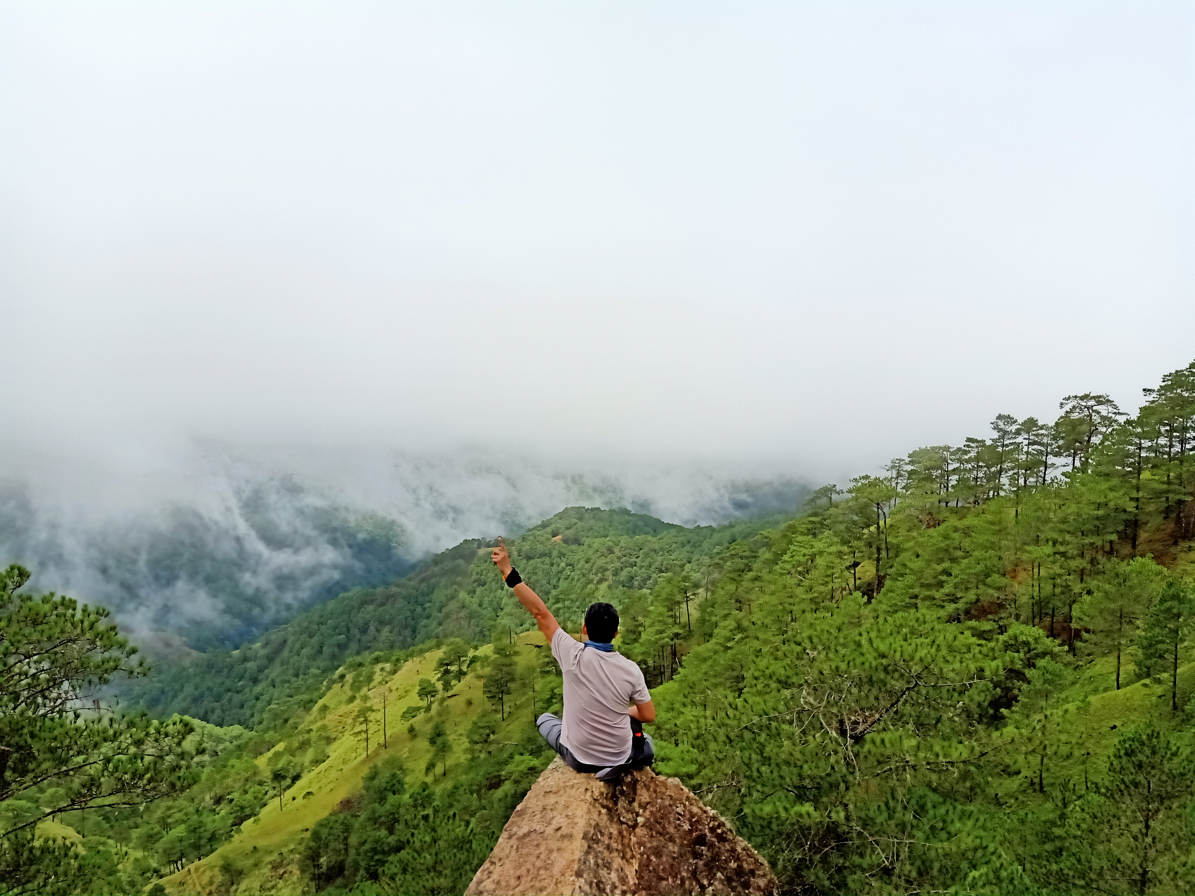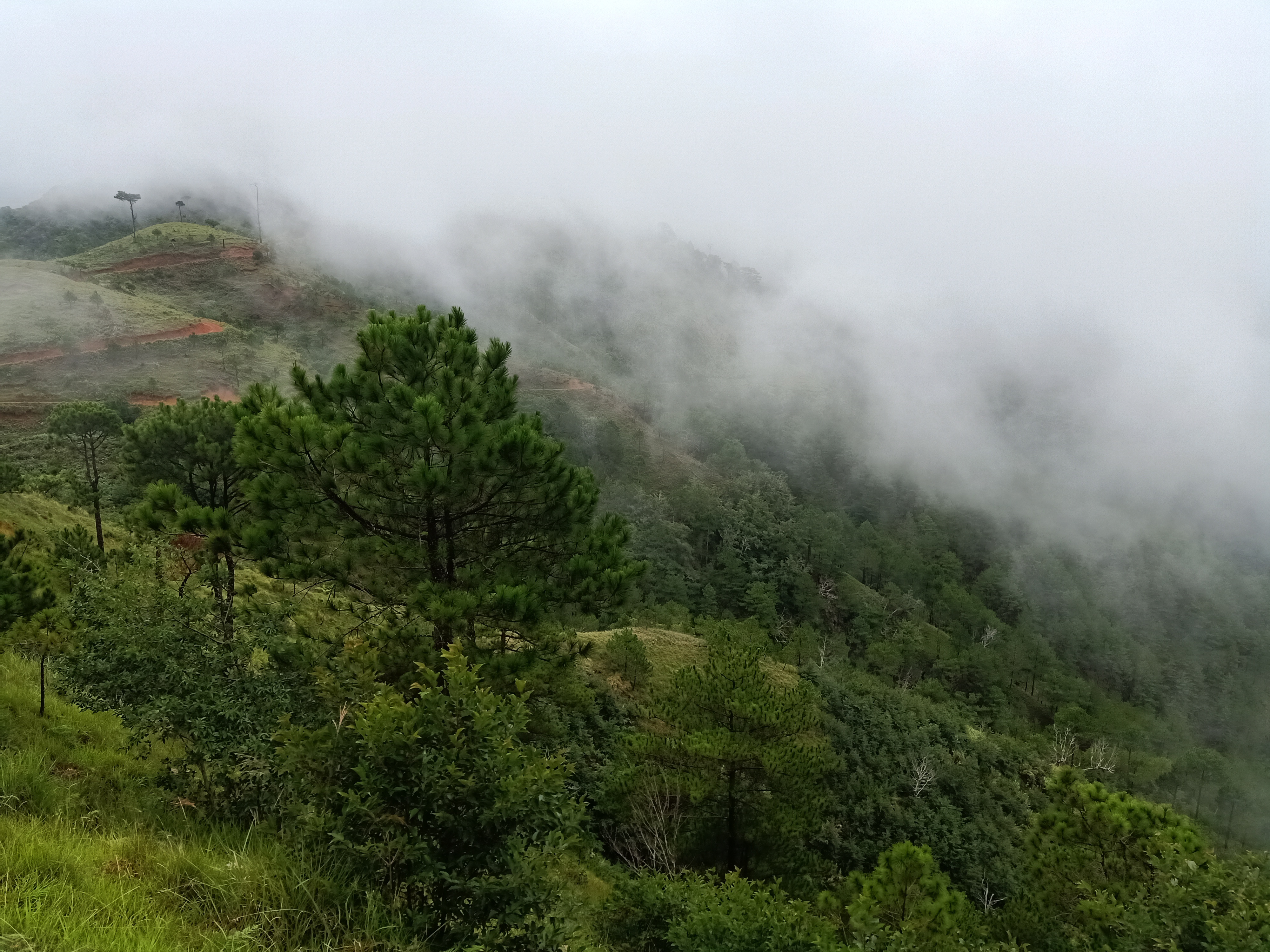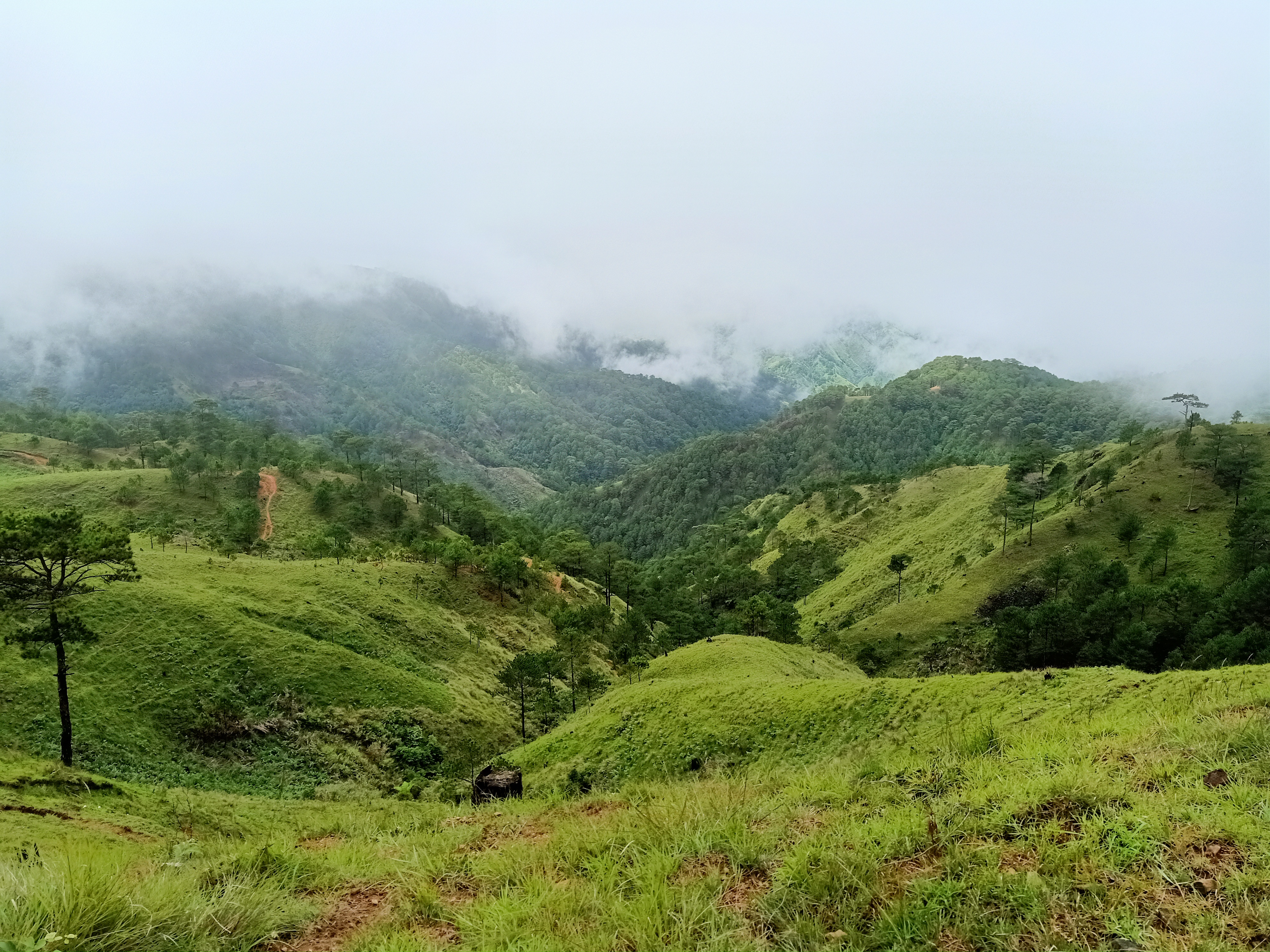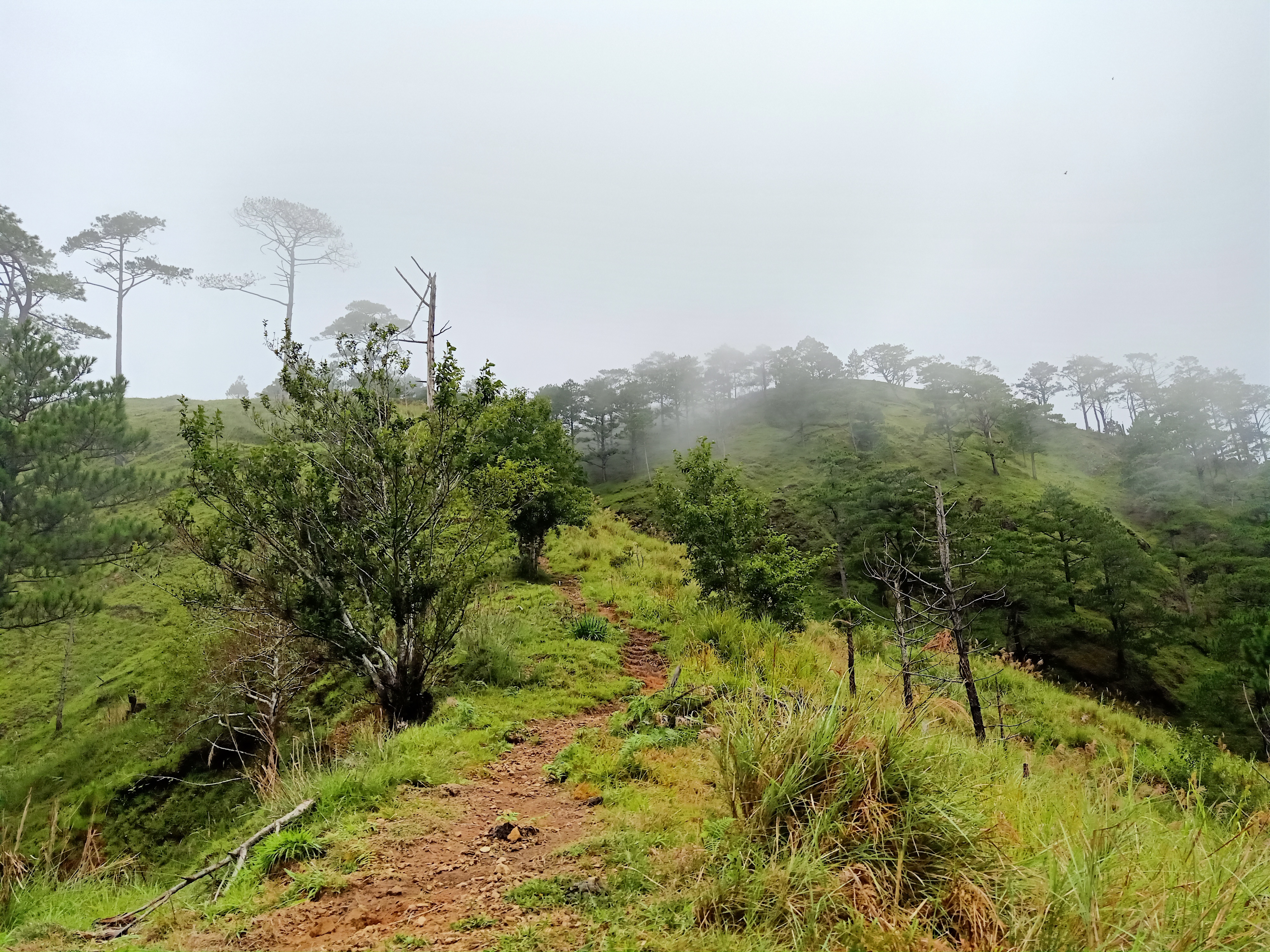 As we gained more elevation, the mountain reveals different sceneries of pine forest slopes. I was actually thanking the heavens for the foggy envelope, as it would look like it would be a scorching ascent if it was sunny. Going higher up on the slopes, a commanding view of the village to our right below can be seen, as well as the mountains we passed through going from Indupit village. To our left are the majestic pine forest slopes and the southern Cordillera mountains stretching infinitely in the horizon.