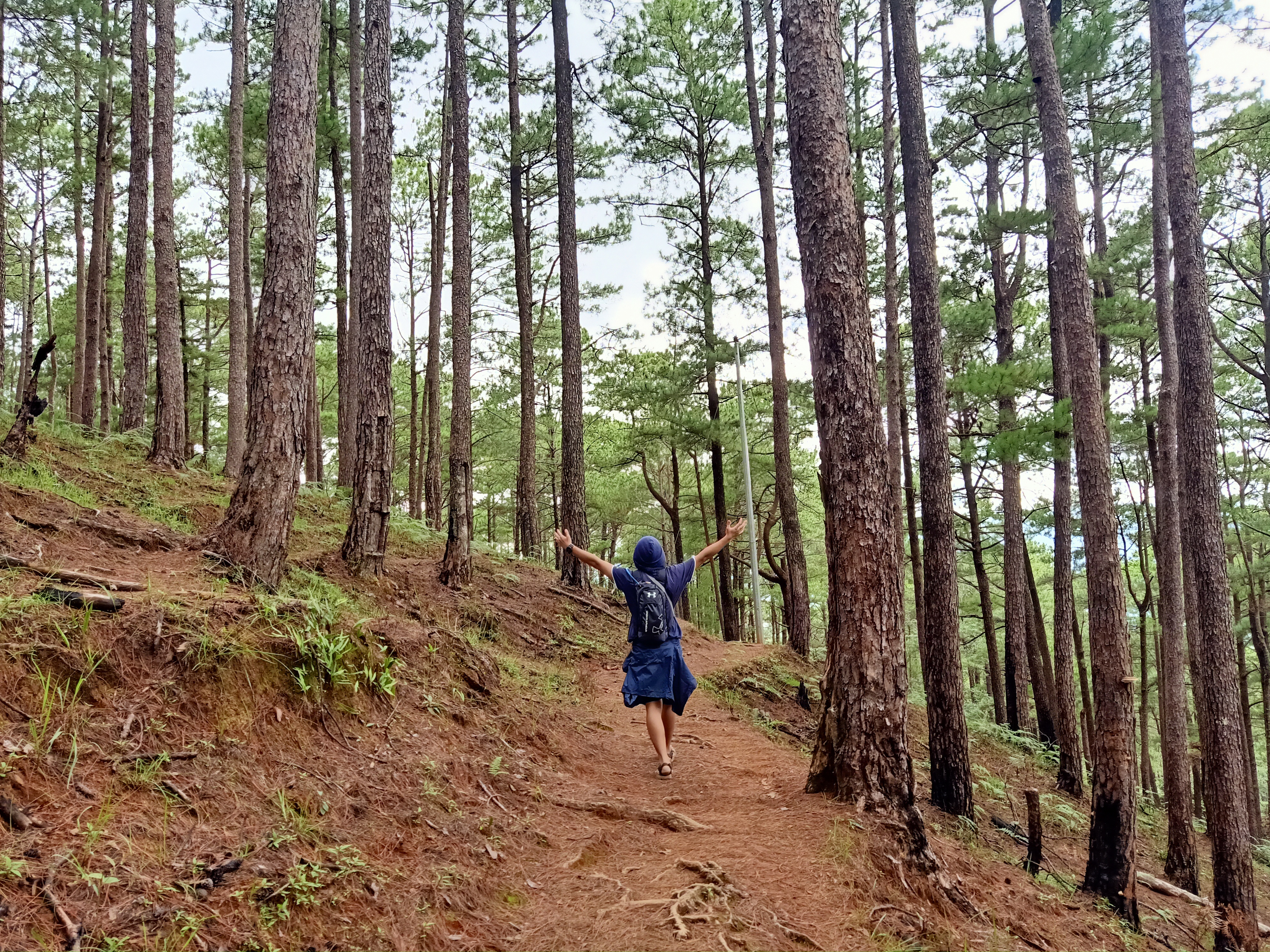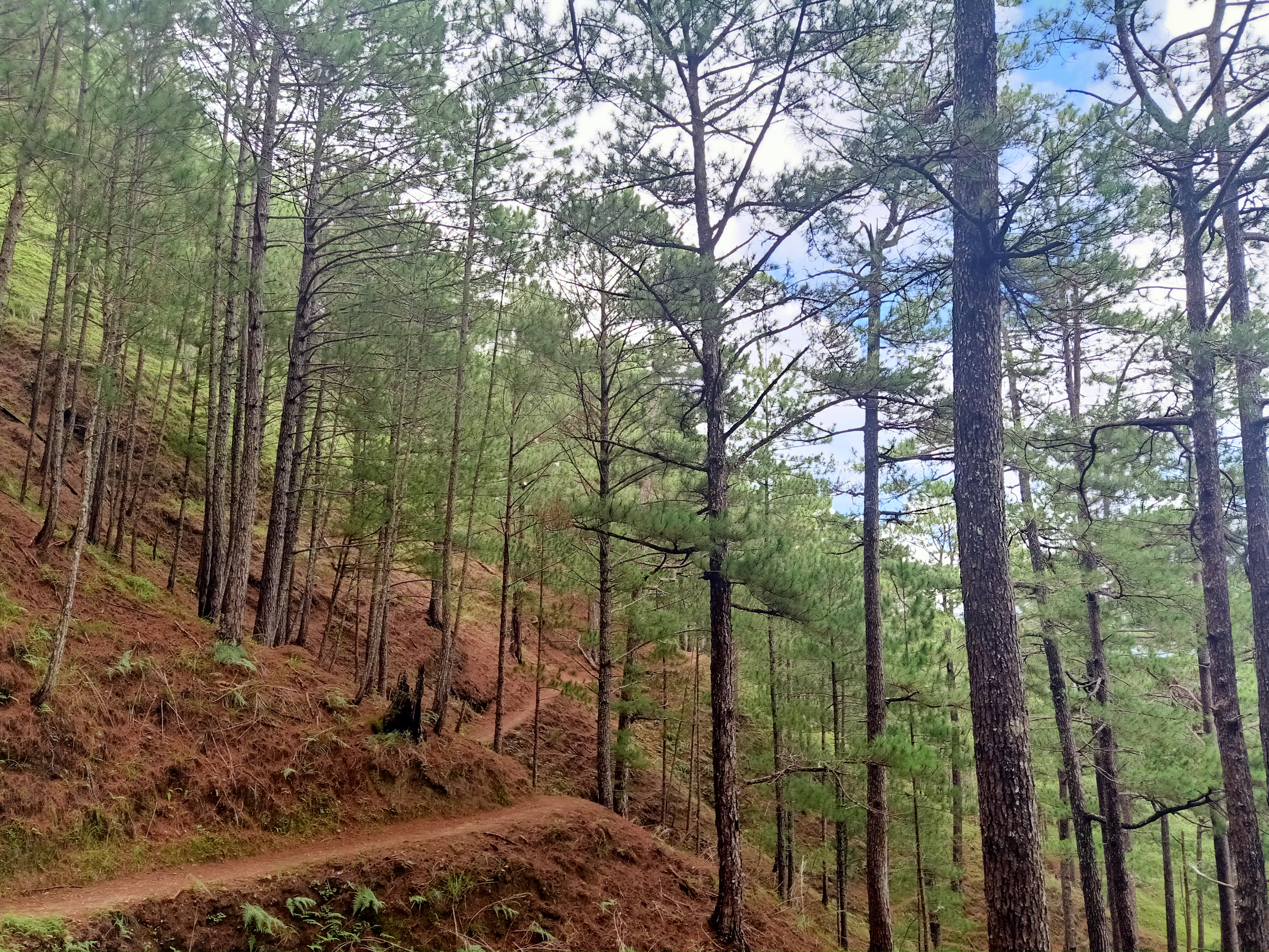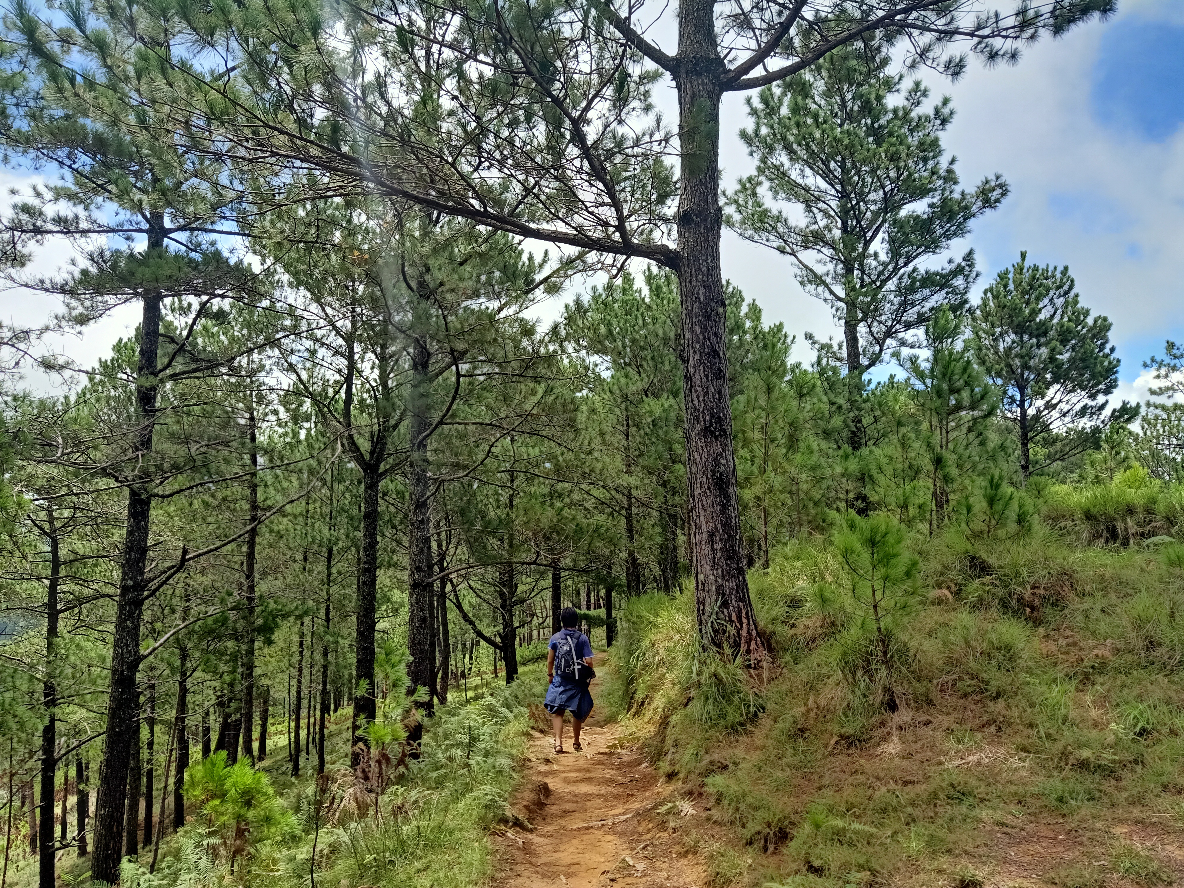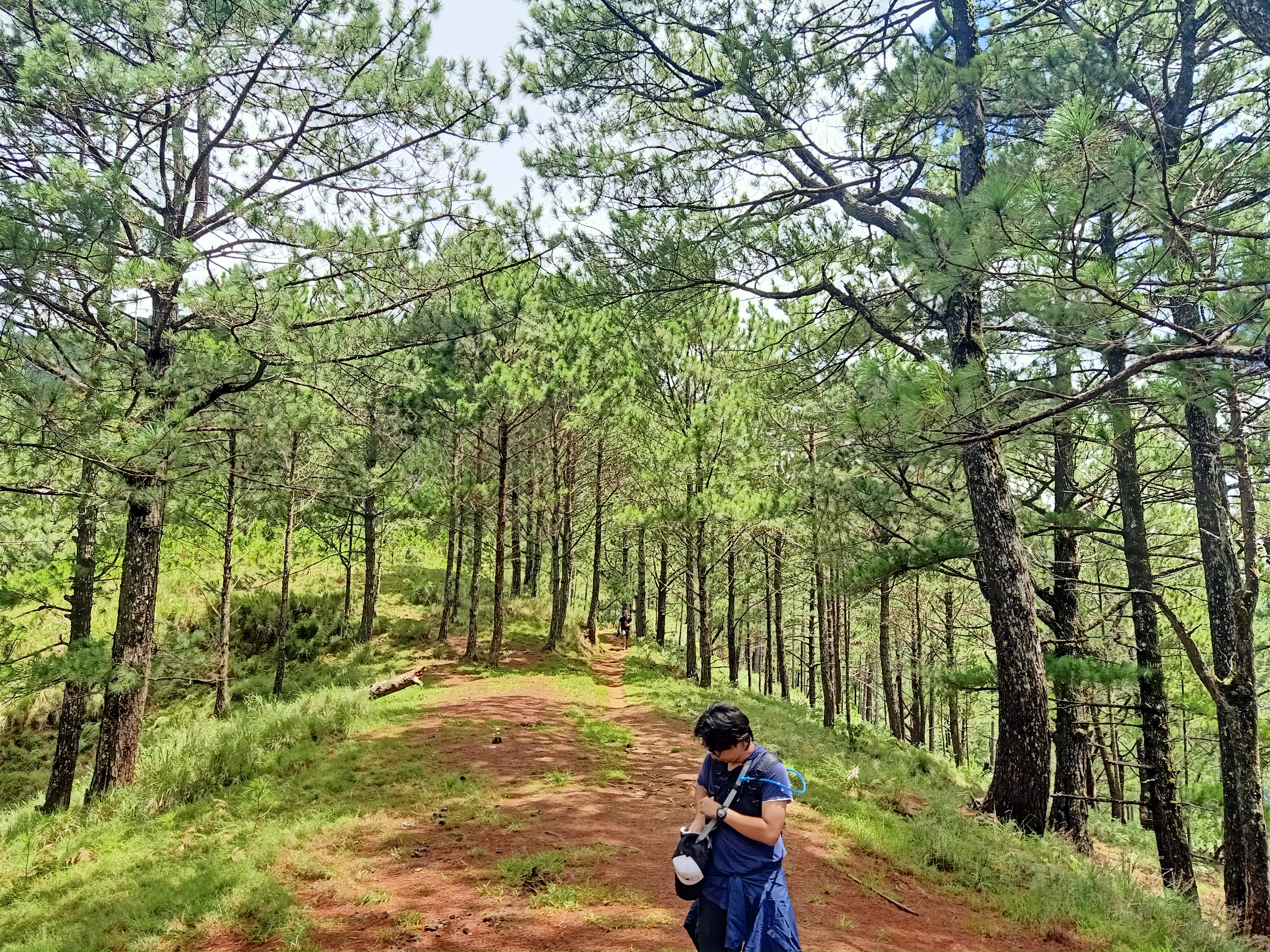 The ascent was quite long and had a few rest stops complete with bench and kubos in between. Sunlight had actually caught up to us, illuminating the pine trees towering above us. The vibe was similar to our Mt. Ulap hike, where pine trees and fallen pine leaves were scattered around the place.