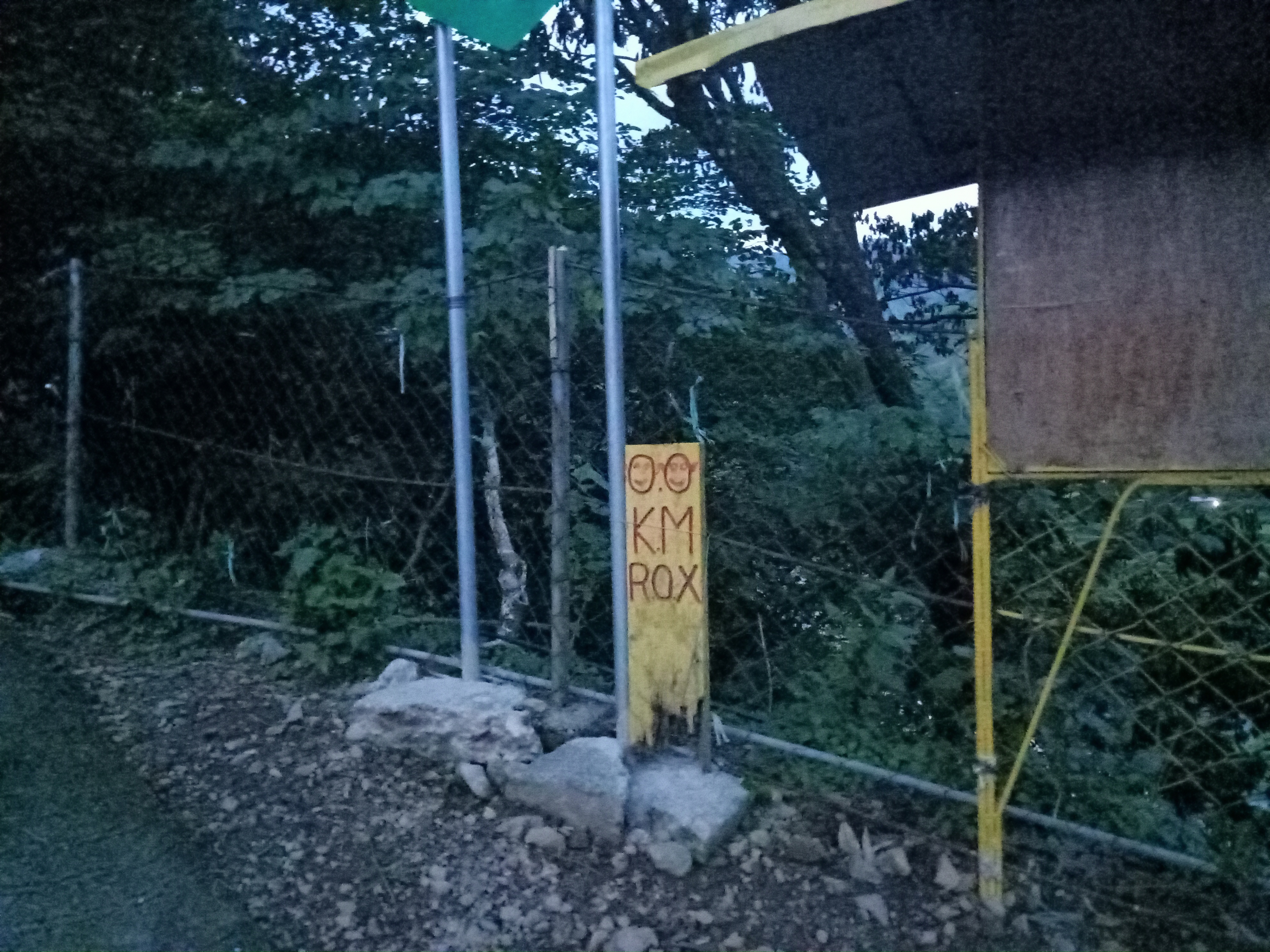 We, then, reached KM-0 past 06:30 in the evening, more than fourteen hours after starting the hike! It was on the side of the road where a few houses dot the sides, and a waiting shed, too, nearby. I radioed the last group for them to call the van drivers to pick us up, since the barangay hall is still far away from the place. Amazingly, the barangay hall is actually seen from where we were, it had four flashing lights and was maybe a few hundred meters above us.
