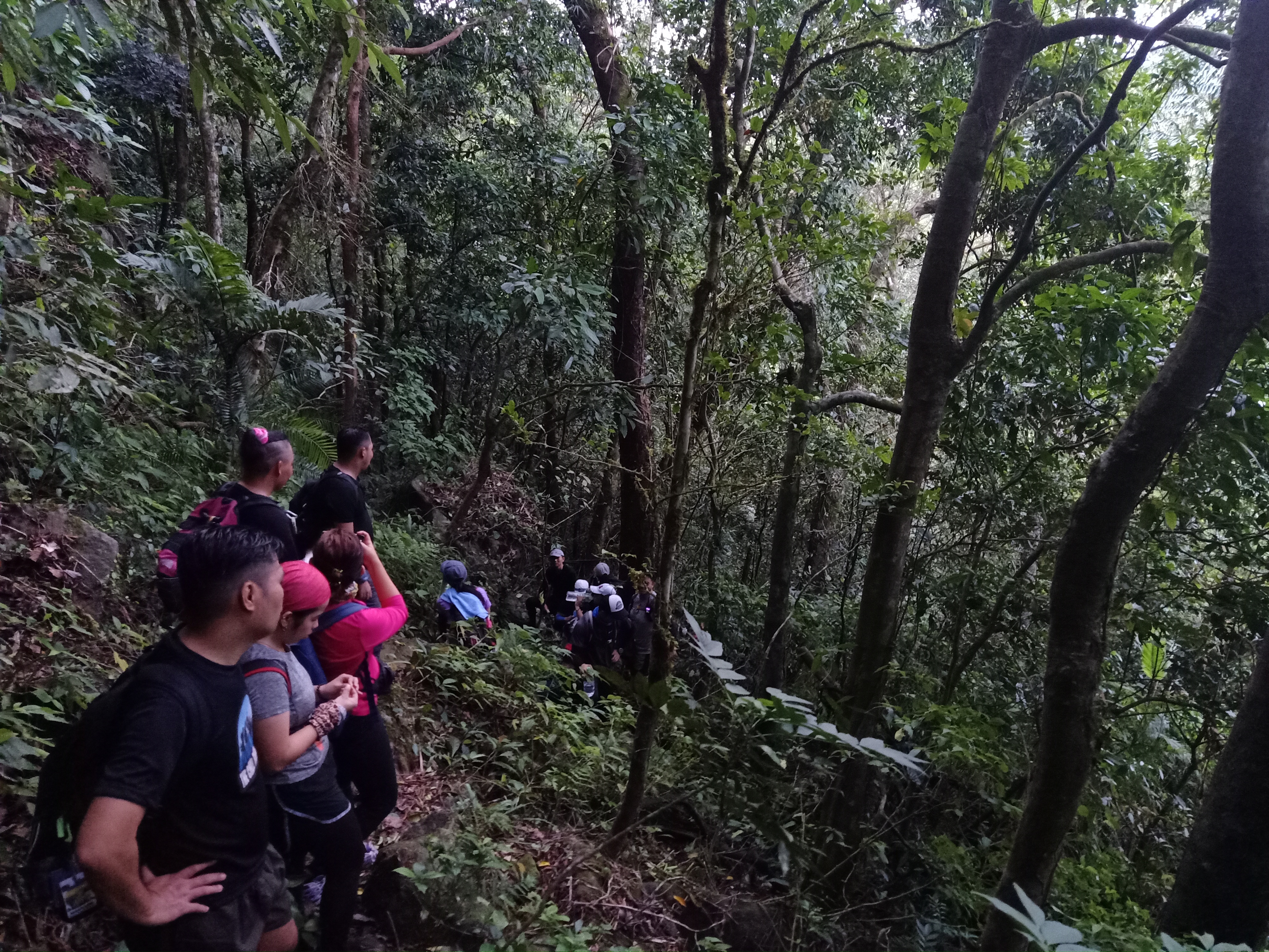 The rain miraculously stopped just after a few minutes. I was once caught up being lost again in the trail. I can still remember vividly that moment – after descending and passing by a slippery boulder filled with undergrowth, I entered an area filled with thick foliage of trees. Once in, I lost track of where I was, as there wasn’t any existent pathway to pass on. Panicking, I waited for the others to catch up. The trail was apparently on my hard left, I just missed it because I was looking forward.