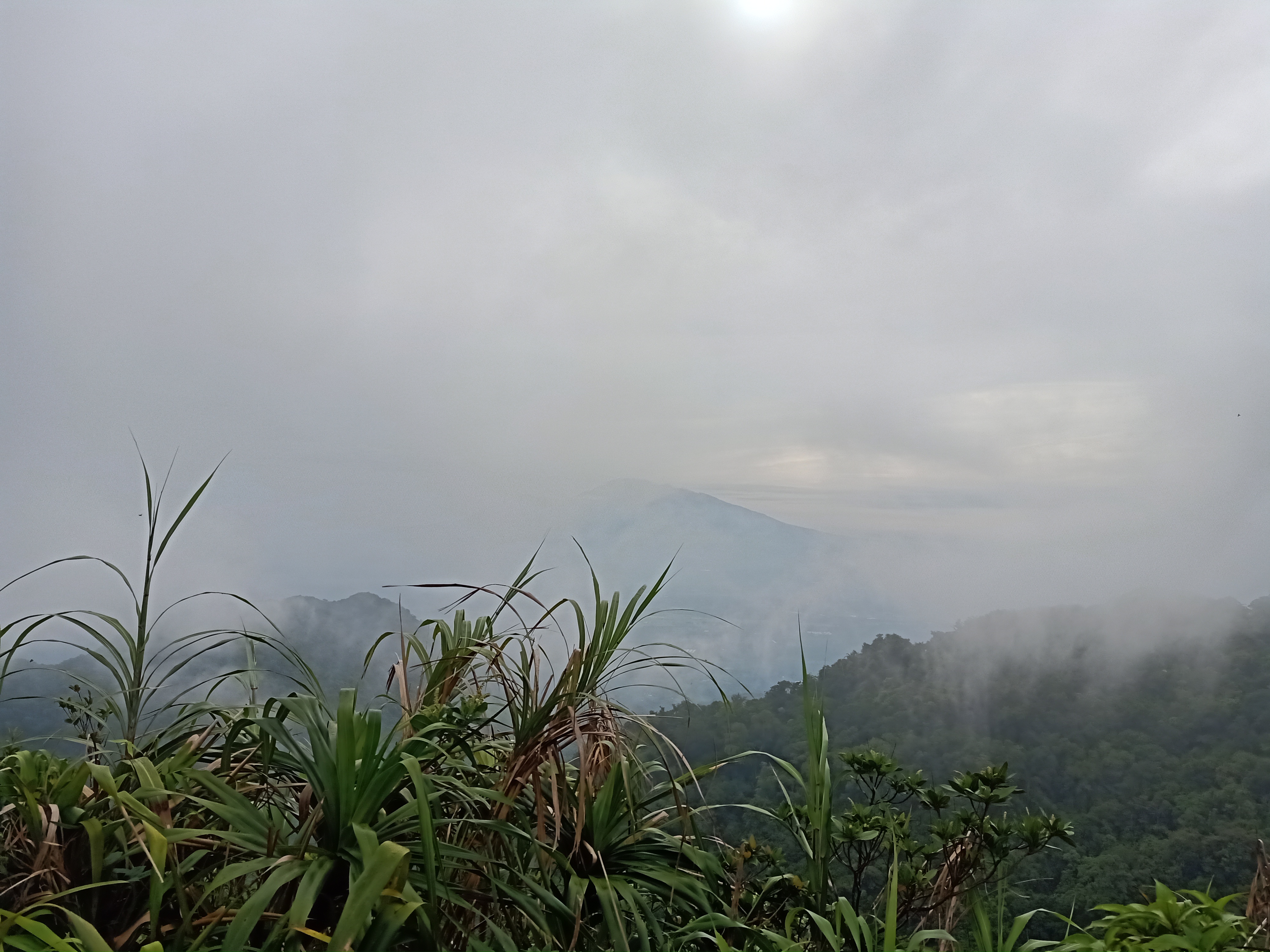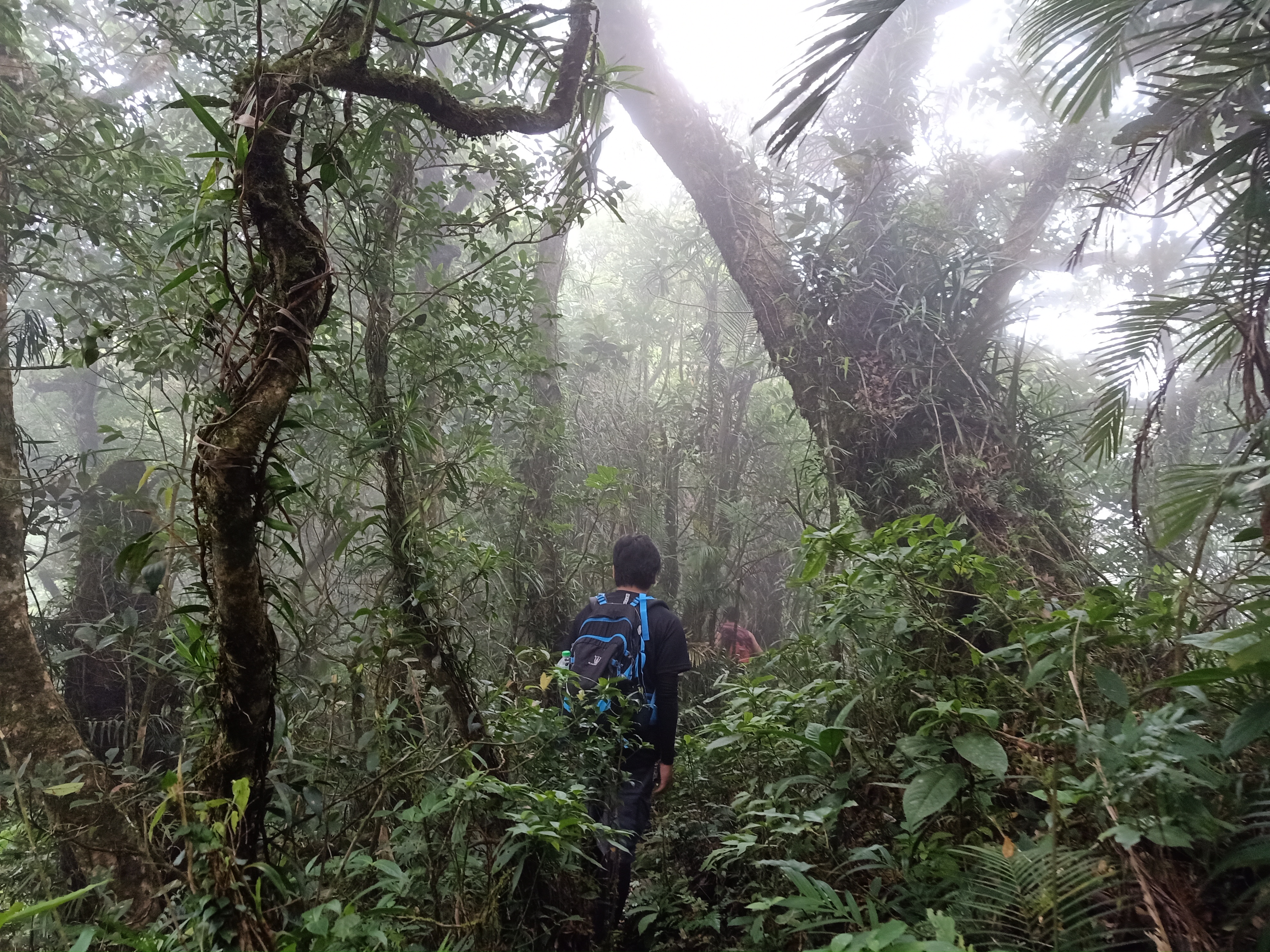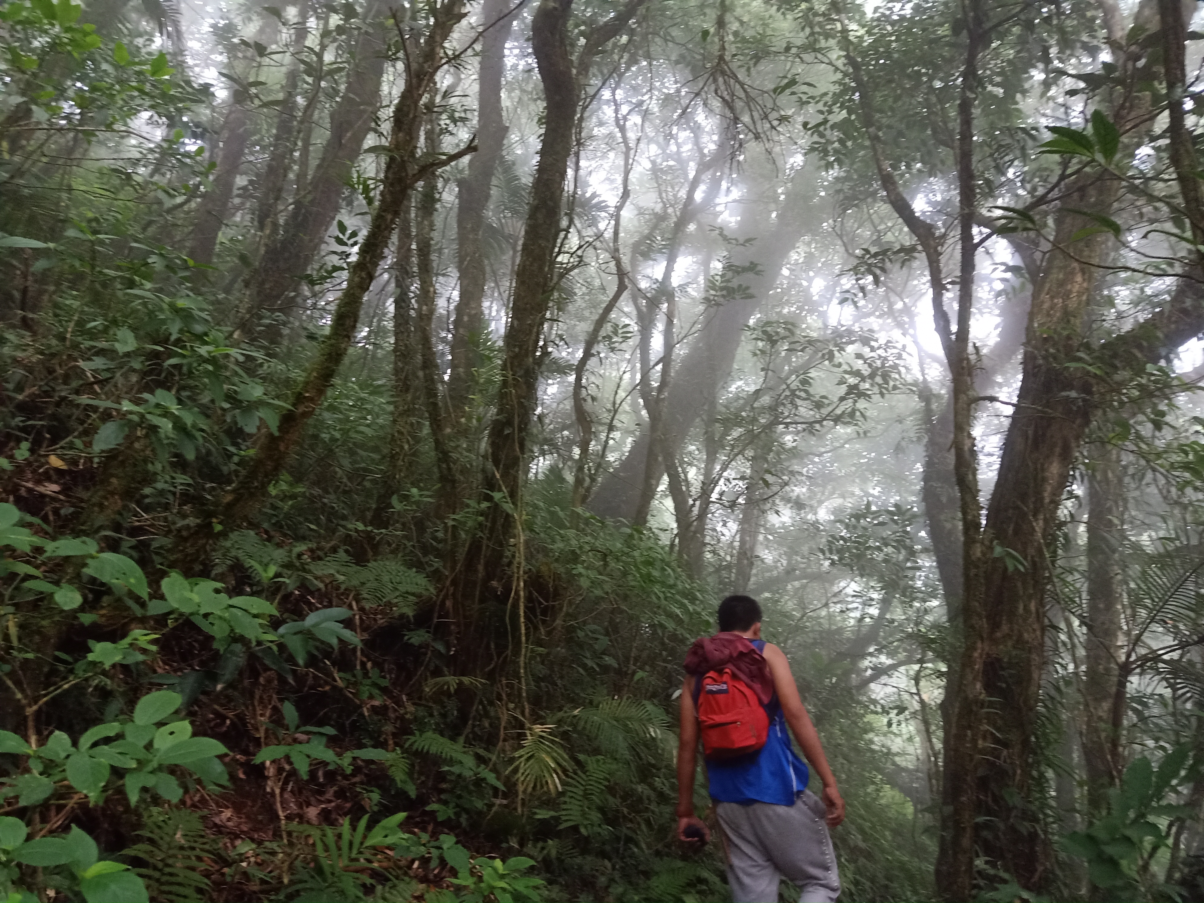 We descended going to the fork after a few minutes of rest and banter. Upon reaching Peak 2, the heavy fog sort of lifted, and gave off a view of Laguna, where the Southern Tagalog grand mountain that is Mt. Banahaw showed itself in its full glory. Its “grandson”, Mt. Cristobal, was beside it, waving to us like a giant child beside its giant father. We continued the descent towards the fork past Peak 2.