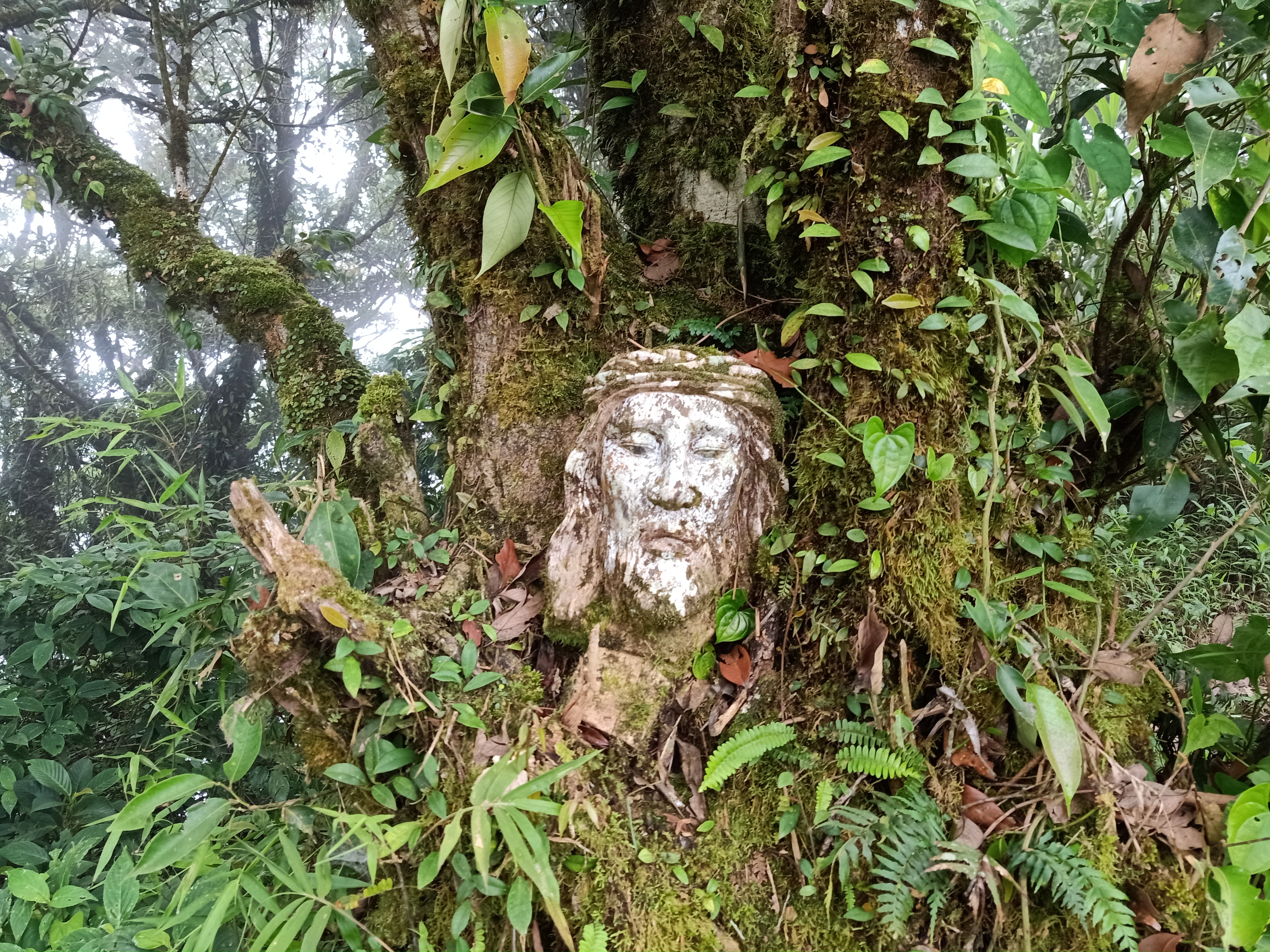 Past Peak 2, it was an easy 15-minute walk going to Peak 3, the highest summit of Mt. Malipunyo at 1005+ meters above sea level. It was seven in the morning when we reached the peak. Unlike Peak 2, it was spacious enough to accommodate all of us. We even rested there and had our breakfast again. Thick fog covered the whole surrounding, making this one of the many mountains that brought me this white highland background. Despite the supposed open view of the peak, you can still feel the thickness of the forest around you. A face of Jesus Christ was also carved on a tree trunk, which probably serves as the summit marker. I already felt accomplished during this point in the hike, but I knew it was still a long day ahead, as we needed to pass through four more peaks.