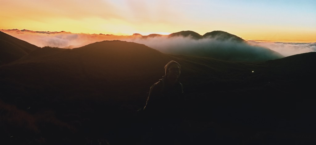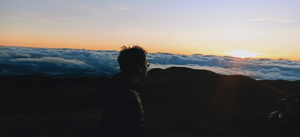 Minutes into the hike, the trail becomes ascending. Here, the first daylight revealed itself coming out of the clouds in the faraway horizon. It was such a marvelous thing to see, that I would feel blessed to see the beauty of the universe, making me believe that maybe, just maybe, there really is a grand creator to all these things. It was beautiful. I knew it was about to get better, as the sunlight continued to brighten. After soaking in the view, it was just a short assault going to Peak 3, our assigned area to view sunrise.