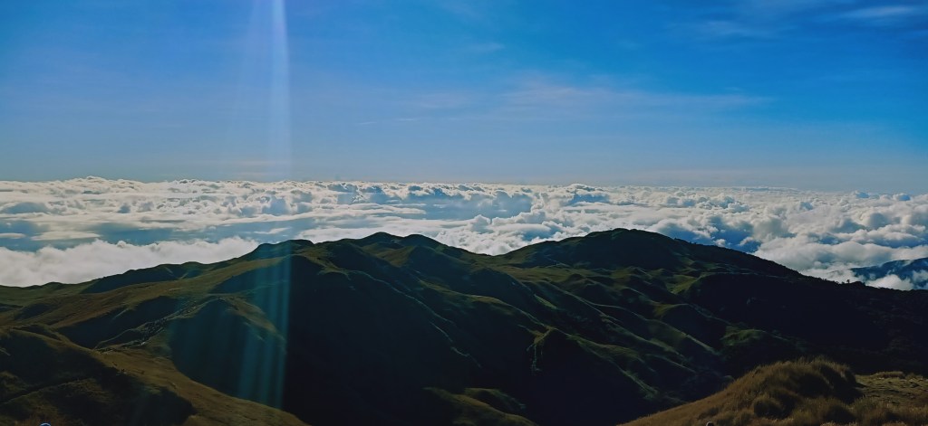 My sweat-drenched skin was trembling from the cold breeze of this northern land. Right before our eyes is the sky, penetrated by the sun’s orgasmic rays, with clouds acting as a semi-permeable membrane that make it hard for blazing Ra to rise in all its majesty. Rolling hills are scattered everywhere, with bamboo grass dominating the scenery. This incredible place can serve as the perfect set for the final war in Narnia: The Lion, The Witch, and the Wardrobe. I could never really describe this place with just mundane lexicons. The feelings I had at that time were too surreal for words, and may be too complex for the mind to comprehend, and too overwhelming for the heart to not love. This is how being on top of Luzon’s highest point touched me.