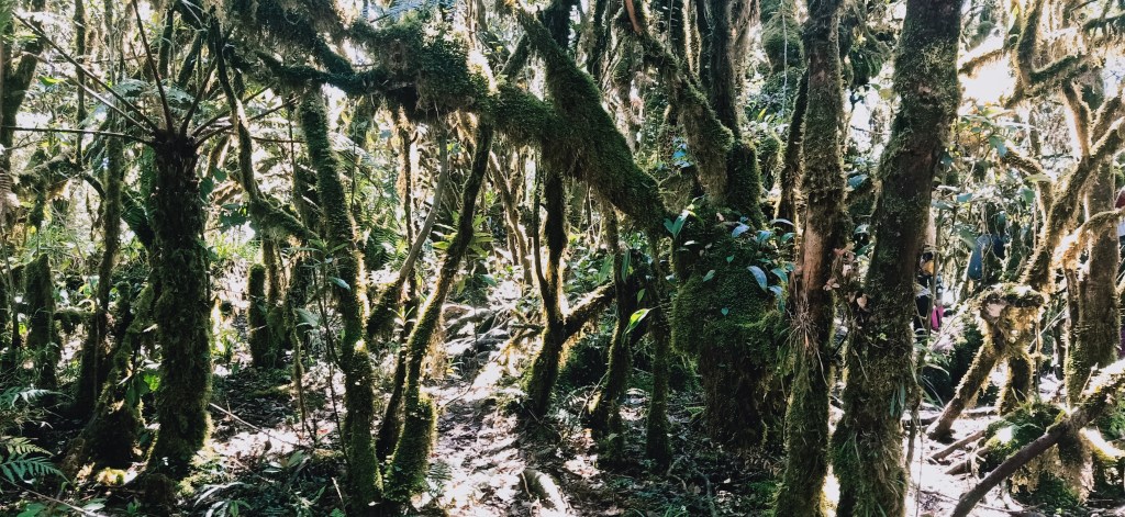 An hour into the hike, we reached Camp 1, where large volumes of people welcomed us. Before reaching this campsite, we entered a forested trail with several ascending portions. Because it seemed that we were able to keep going, we did not rest there and continued the hike going to Camp 2. The trail would now be an immersion inside Mt. Pulag’s mossy forest. This is the first time that I am going to do dim-hiking inside a mossy forest. Surprisingly, you can actually notice the eerie moss-filled trees around you even if it’s dark!