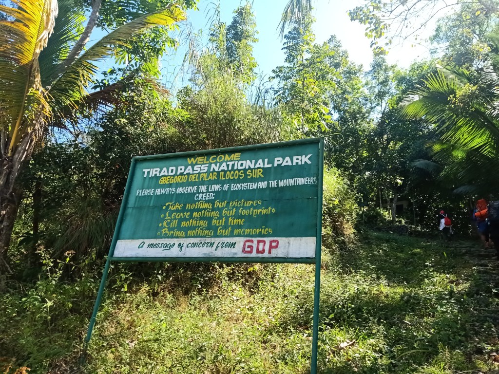 Our butt cheeks were already complaining from the bumpy ride brought by the rocky path we were taking. We also crossed several streams, where to our side, kids were bathing in the murky waters. A few minutes of that bumpy ride, we spotted the pointy Tirad Peak. Luckily, the road-less path turned into an ascending concrete, where a welcome sign that says “Welcome to Gregorio Del Pilar” greeted us. The surrounding was filled with trees by the side, where after a few minutes, we were taking a road at the side of a very large rice field that ends at the slopes of Mt. Tirad. We can already see clearly the mountain by this time. We were going to its left side, in which we entered a very small community inside the wide plantations. At 09:30 in the morning, we reached the municipal hall of Gregorio Del Pilar. There, we registered and paid courtesy at the police station. Then, we navigated the very small town until reaching the end of the road. This was the start of the hike going to Tirad Pass.