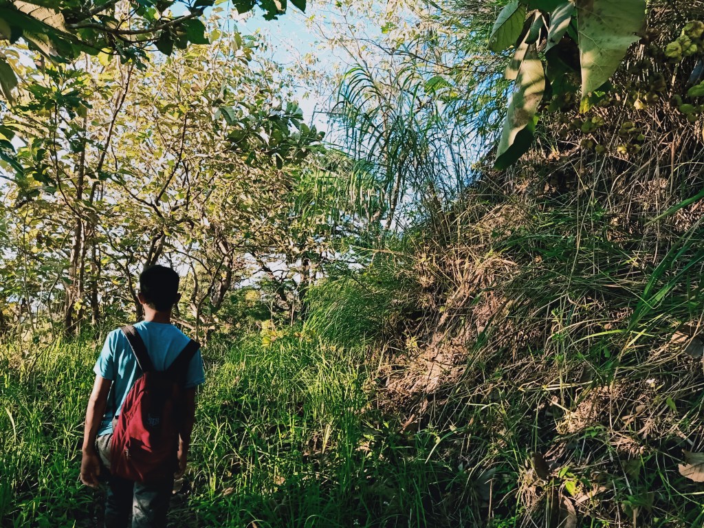 The forested trail was filled with wild sunflowers, with their yellowish petals beautifully covering much of the trail. After thirty minutes, we exited the forest towards grassy open area where the trail continues steeply downward. Here, one can see the altitude one has to cover to go at the bottom part of the slope, and just by looking at it, it will already make you feel tired. My mother was lagging a few minutes behind us, so the group decided to take a long rest at a spacious portion of the trail. Almost all of us were panting and feeling our legs ache from that arduous descent. Our guide, a 16-year old boy, said that there is still a long way to go for the descent. After a few minutes of rest, we pushed on with this major hike-like descent.