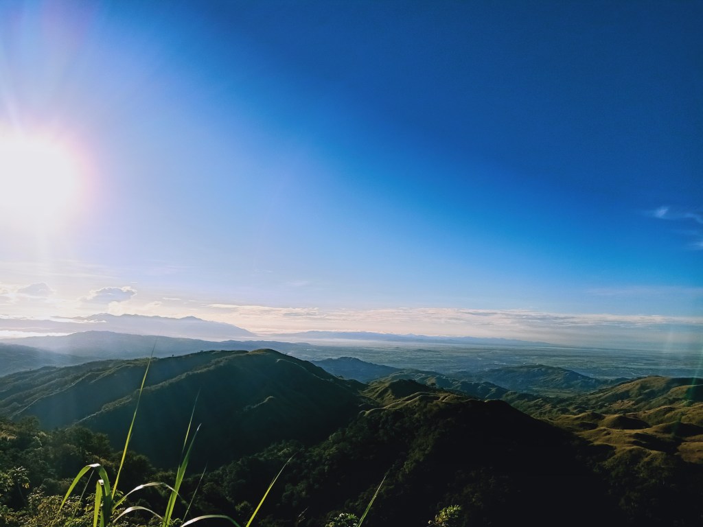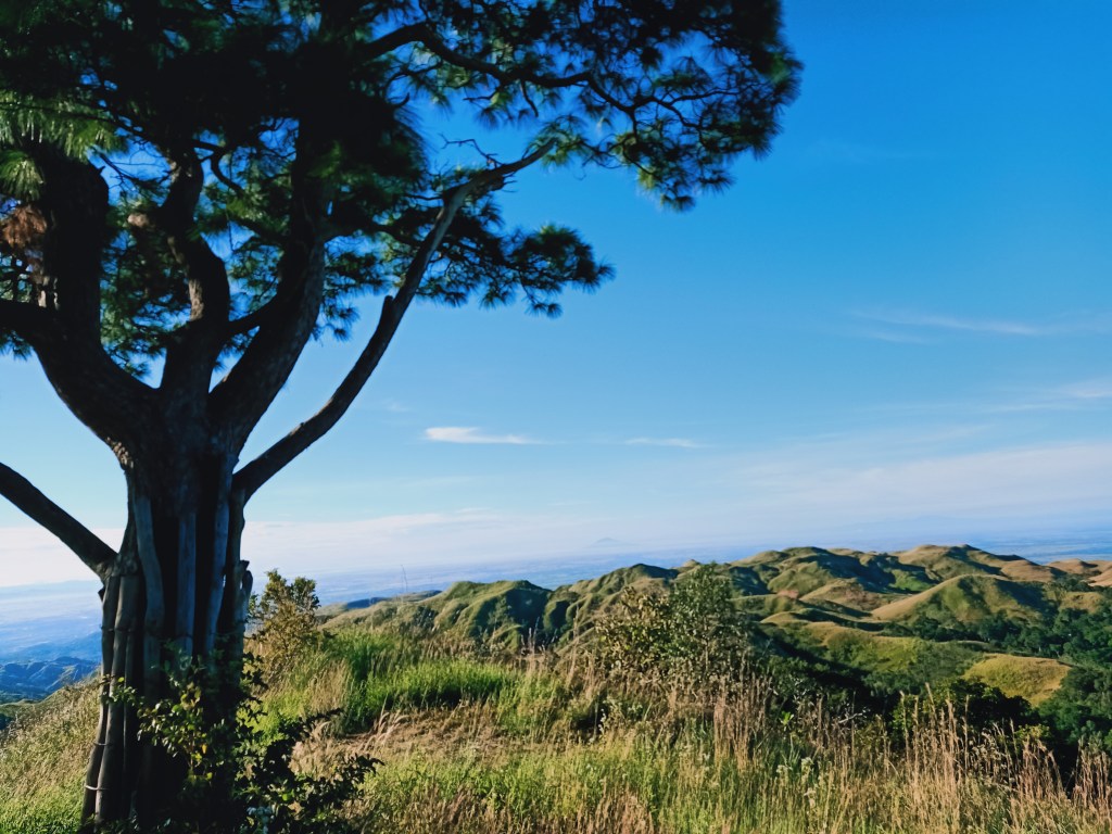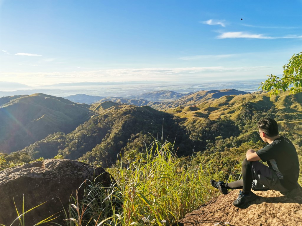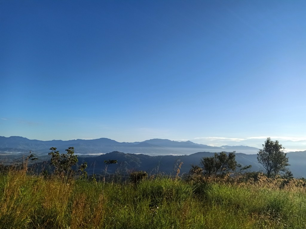 As the first glimpse of sunlight appeared in the middle of the dark, indigo sky, we reached the upper parts of the mountain. While the lower parts that we ascended on was filled with dipterocarp trees, the upper portion had a mixture of both dipterocarp and pine trees, alluding to the Cordilleran trait of the mountain. As we continued the ascent, sunlight caught up to us, revealing the yellowish green colors of the pine trees and the surrounding grasses on the slopes of the mountain. There, we slowed our pace to appreciate the magnificent view. The fields of Nueva Ecija and Nueva Vizcaya can be seen at this point, with the portions of the Caraballo Mountain Range and the Sierra Madre Mountains seen in the eastern direction.