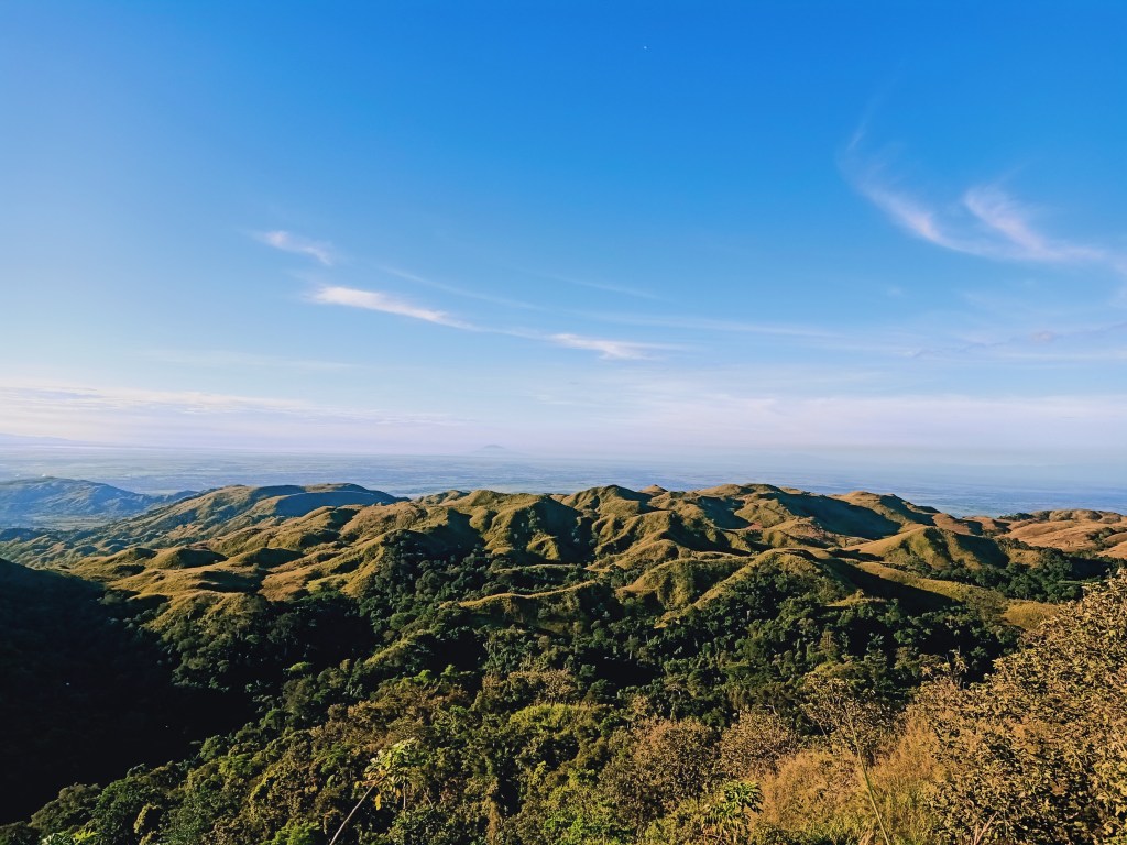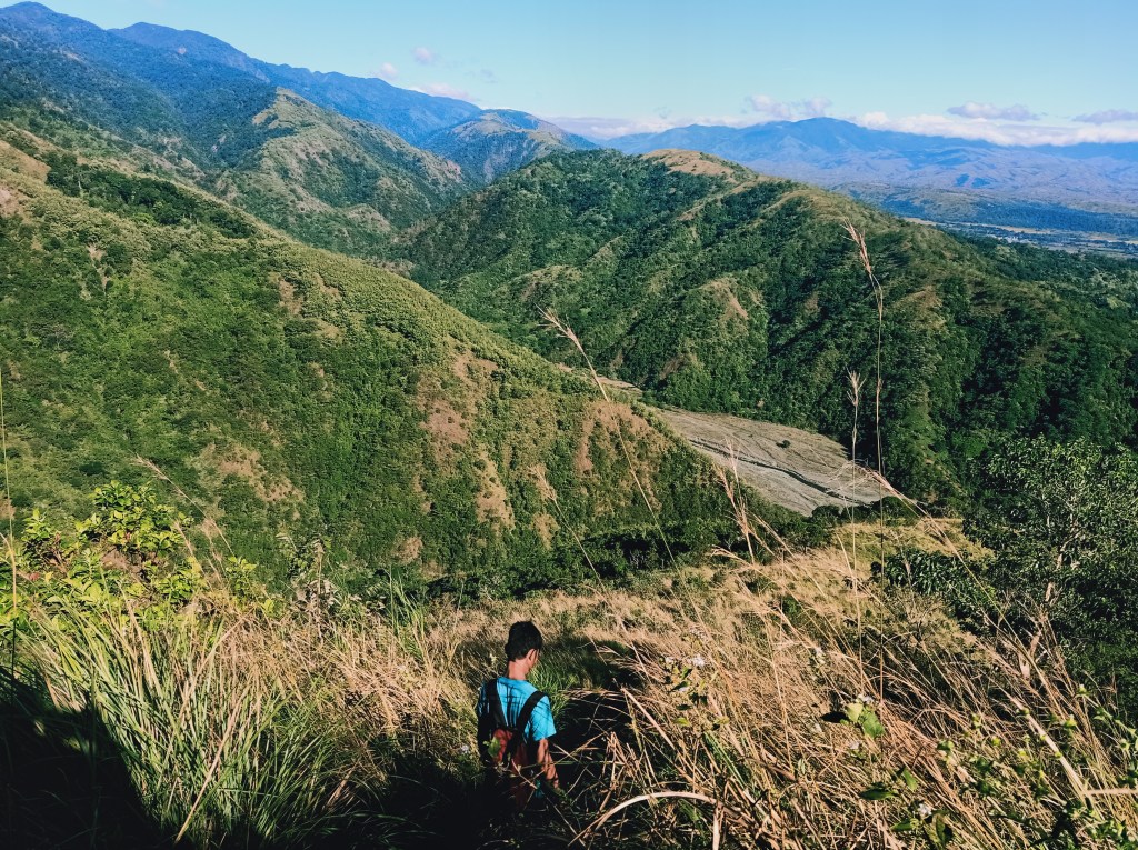 We took a lot of pictures on those portions of the mountain. There was this pine tree right beside a cliff where I took a picture on, its backdrop was a magnificent view of the farm fields and the mountains behind it. Afterwards, we pushed for the final ascent going to Batong Amat, the summit area of Mt. 387. The easy scent was on a softly inclined footpath on a grassland, in which after a few minutes, the famed Chocolate Hills of the North would appear on your left (south). Having our first glimpse of this magical view got our eyes glued on it. It was such a beautiful thing to observe. I haven’t been to Chocolate Hills in Bohol but it does look like a series of green hills chunked together. The chief of the place later told me that that mountain is Mt. Williams, a hiking and cycling destination in the City of San Jose.