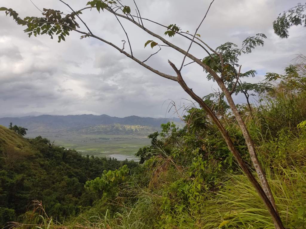 We started the hike past six in the morning. Coming from the barangay hall, we took a rough road that directly goes to the foot of the mountain. We then entered what seems to be a farmland which took us immediately to a straightforward ascending trail. This trail, which interestingly seems to be on a narrow ridge, would stretch for a few kilometers. This was the steepest portion of the hike and it got almost everyone in the group panting and stopping for five-minute breaks. The view on the trail-ridge was already magnificent. To our right side is a forested slope, forming the lower parts of Mt. Sawi. We can also see the jump-off point below as well as the stretching fields of Gabaldon, with the mountains of General Tinio in the near horizon.