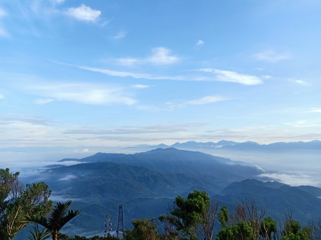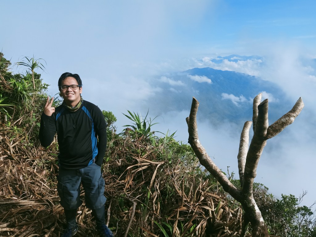 We then entered a trail in the middle of the forest. This trail stretches for a few meters, which then zigzags to the left, stretches for a few good meters, then zigzags to the right. This would go on and on until reaching the cell site tower. After gaining some amount of elevation, we were welcomed by a magnificent sea of clouds by the side of the trail. No wonder it was foggy on the highway! We stopped for a few minutes to appreciate the magical view.