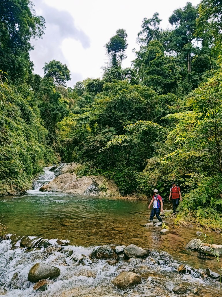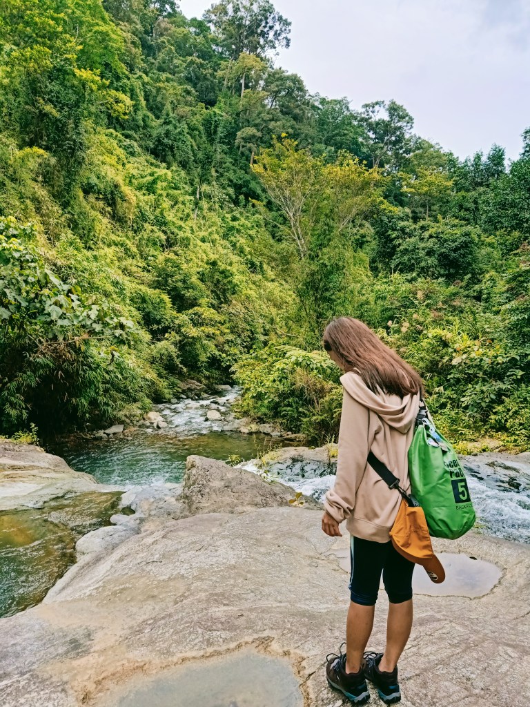 We decided to return to the jump-off an hour after we stayed at Falls 3. Instead of returning to the pine tree slopes, we followed the river from Falls 3. This trail involves climbing through the boulders scattered along the river. Guides are a must here since the trail is almost nonexistent and obscured by plants and trees at the side of the river.