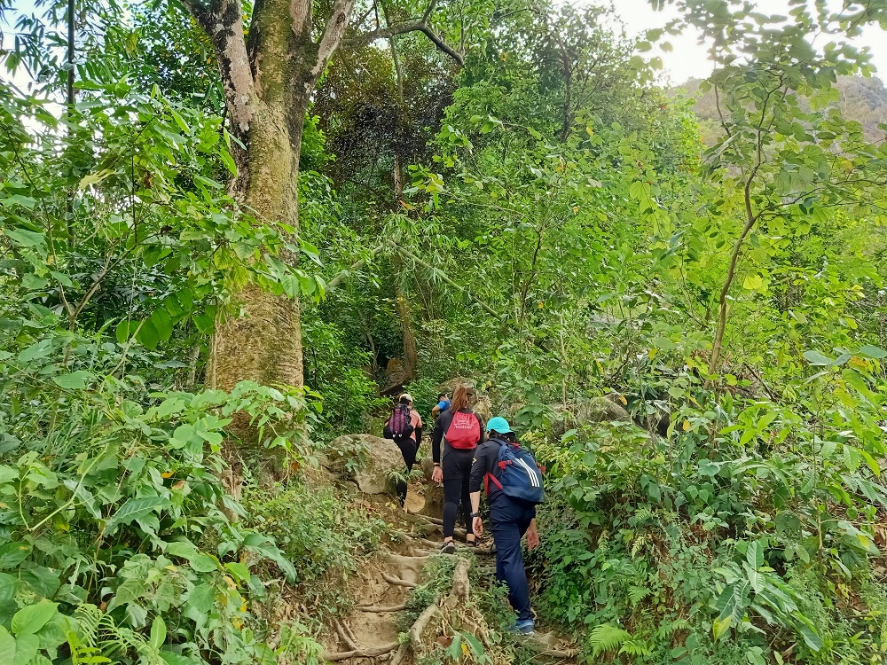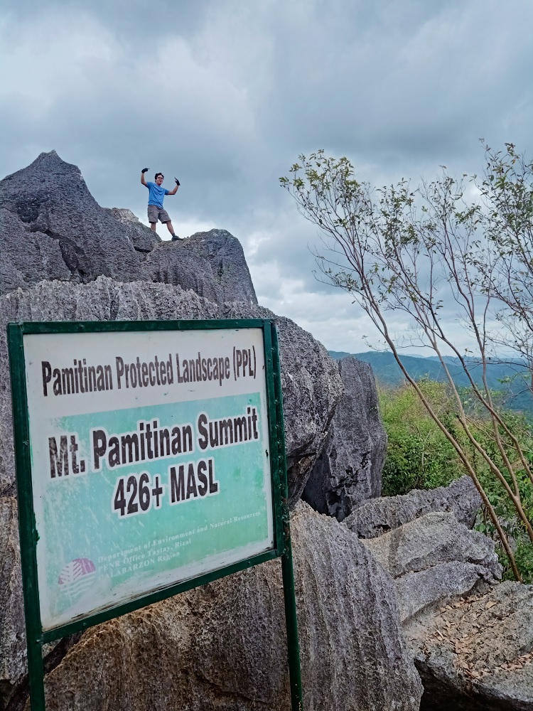 After a long round of rest, we commenced the hike up to Mt. Pamitinan, which was on the right side of the junction. The trail was all limestone from the get-go. Similar to Binacayan, the limestones were complemented by bamboos and other shrubs. We needed to scramble upwards on sharp limestones and make our way through a canopy of boulders. We then entered a short section of a bamboo forest until reaching the viewpoint of Pamitinan after almost an hour of ascent. This viewpoint is where most hikers strike a perilous pose on the edge of a boulder with Sitio Wawa serving as a backdrop below.
