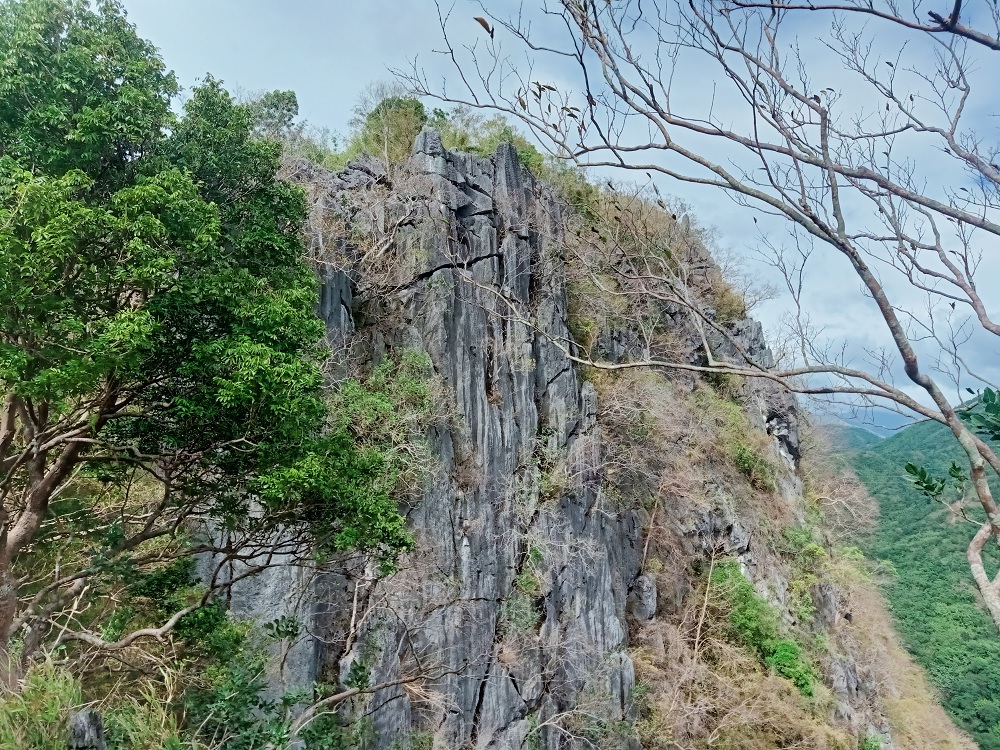 After having a take five rest at the closed store, we continued with the hike. The trail past the store was all ascent. We were immediately greeted with sharp limestones which we needed to climb using all four limbs. There were many instances where layers and layers of thin sharp limestones served as handholds and footholds. The trail was highly technical. After minutes of technical rock scrambling portions, I was able to reach the summit area of Mt. Binacayan.