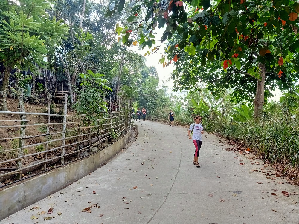 Since we had the summit all to ourselves, we took the chance to snap pictures around the summit area. Afterwards, I went off to descend on my own. In no time, I reached the store which, upon my arrival, was now open! I ordered a stick of banana cue, a cup of buko juice, and a cup of avocado shake to quench my thirst. After such a needed food break, I went ahead and followed the trail that exits through the cemented road. I ran a good portion of the descending pavement and reached the barangay hall in no time.