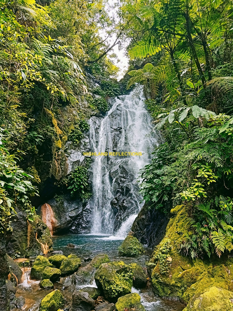 We, then, left our heavy backpacks to go off-trail towards a short riverside path dotted with mossy boulders going to the magnificent Twin Falls. In less than five minutes, we were already within the vicinity of the waterfalls. The basin of the waterfall is partially blocked by a huge boulder to the right where the opening contained knee-deep waters. The water flowing down the Twin Falls gushes a bit strongly. We only took pictures at the opening since we did not want to get our shoes wet.