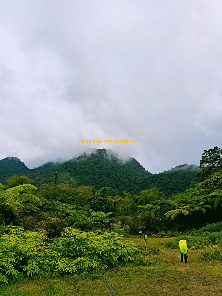 After returning to the guard house and fetching our full packs, we continued the hike. The continuation of the trail initially passes through a very steep section at the other side of the river near the guard house, but returning to the usual flat to moderately inclined path afterwards. After twenty minutes of walking, we exited towards a grassland plateau surrounded by forested mountain slopes. This wide plateau, at 1,260+ meters above sea level, is called the Rancho Camp, serving as our campsite and stopover for the day. We set our tents near the lone house at the camp. Interestingly, to the southeast, Yagumyum Peak, a subsidiary peak of Mt. Talinis, towers over the camp.