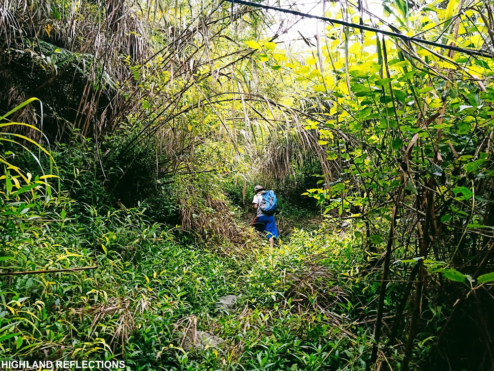 Expecting that I would now be taking a grassy slope, I was again mistaken, as the trail was surprisingly still on a riverbed, but dry. However, I noticed that, unlike the river parts, this now has a lot of ascending portions, similar to the initial parts of Mt. Apo’s boulder face. Before entering the forested portion of the assault, the guide and I waited for our companions. Afterwards, we took the steep ascents inside the forest. The undergrowth was overwhelming all throughout. Nearby the start of the forested trail was a roped section that was both very steep and obscured by undergrowth, that I almost stumbled on one of the boulders perched on the trail.