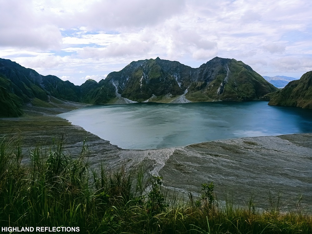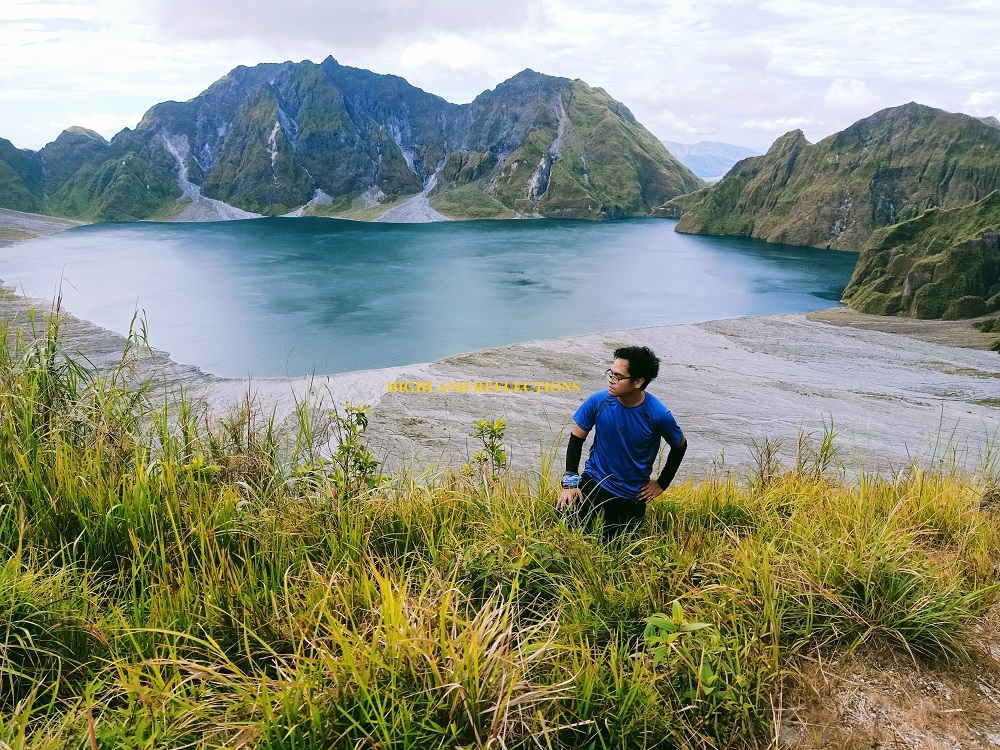 Past that area, we found ourselves again being sandwiched by scrubby boulders on both sides. Beneath our feet is a lahar path where a grey water was flowing, probably one of the unique things I saw for this hike. Finally, we exited towards a pebbly rough road surrounded by green, grassy volcanic slopes. I knew we were nearby. As there were many paths carved around that area, I waited for our dear guide to, well, guide us, since I passed through many dead ends in that area. As he guided us on the last stretch of trail onwards the crater view deck, I savored the gusts of wind smacking my face, all while ascending the grassy slopes. Before reaching the summit, I looked back, and there, contours of greenery comprised the awesome view. “So this is what the surroundings of Pinatubo look like,” I said to myself even if I had already gone to the Capas Trail a few years ago.