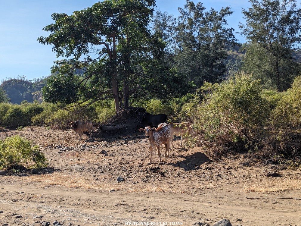 After at least thirty minutes of walking under the sunlight, we reached the base of the mountain where we passed by three dried river sections dotted with boulders. In between these three dried river crossings were some short sections of a trail filled with shrubs and bamboos.