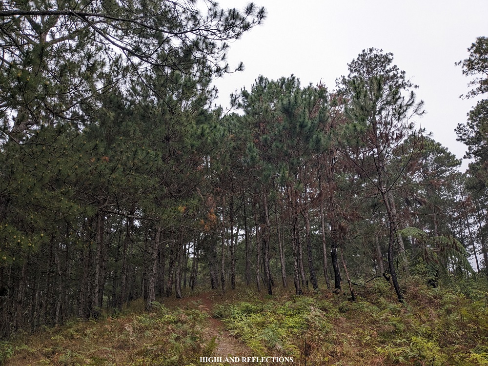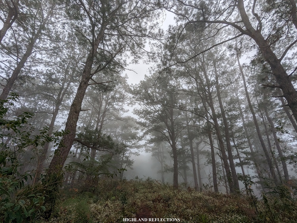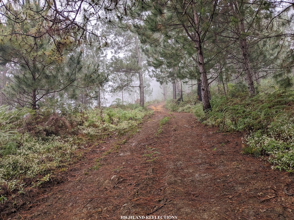 The pine-filled hill at the start of the hike was, thankfully, only covered in thin fog. Unlike my last time there, I had no other view but the eerie sight of pine trees being smothered by thick fog. For this hike, I was still able to see where the Ifugao-Mountain Province highway is carved in the middle of the distant mountain slope to our left – that’s how thin the fog was!
