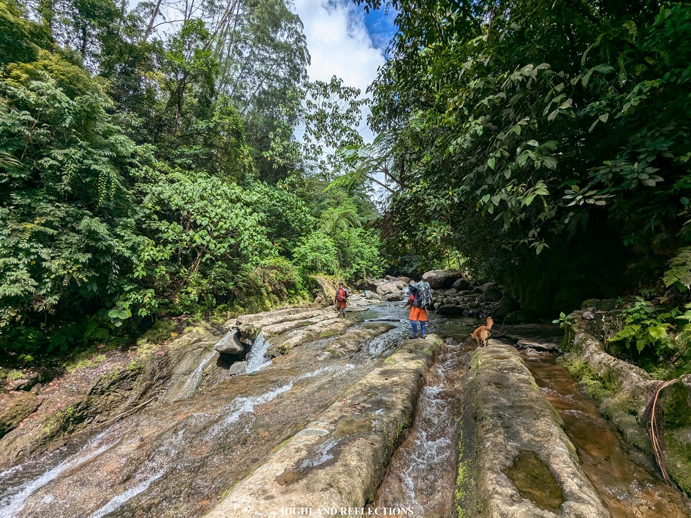 Past the spillway is where the trail gets narrower, and can only fit a single file of hikers. Limatiks or small leeches started to make their presence felt. After less than an hour, we reached the second river for the entire trail going to the campsite. Here, we had our lunch. Some of the joiners for this trip shared their Bicol delicacies in jars, such as a well-cooked sinantolan and Bicol express. I felt grateful for their gesture!