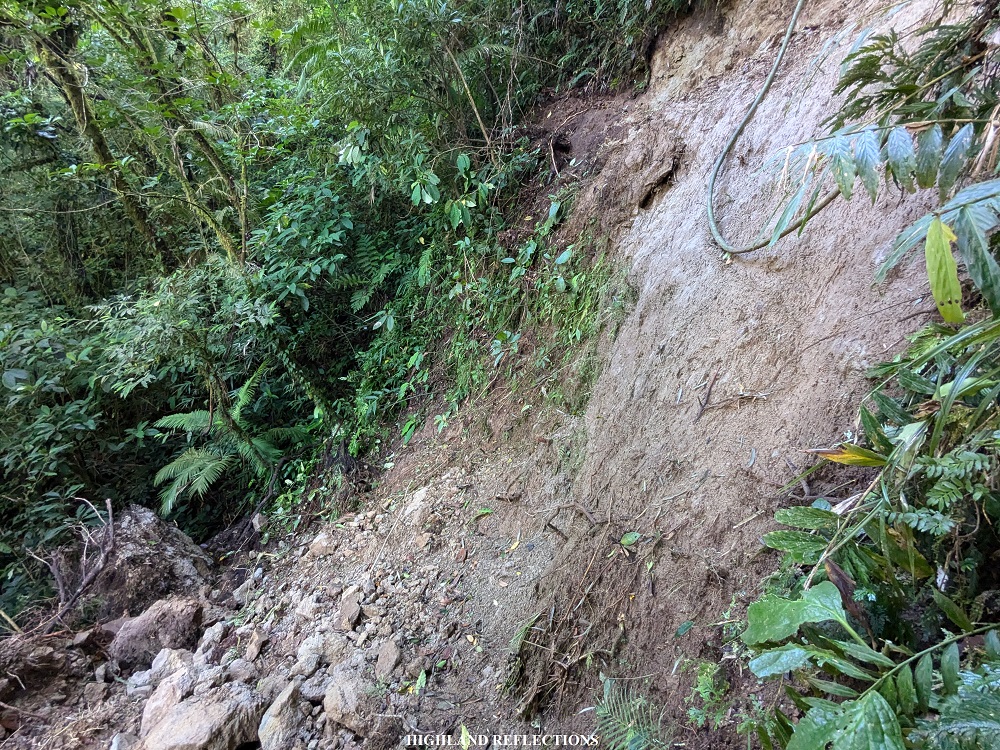 The trail starts at the same trailhead going to Angelina Falls, but this time, taking a left turn towards an all-ascending trail. To the surprise of our guides, there was another landslide just a few meters away from the campsite. We climbed this slope very carefully as the soil and rocks were still quite loose. Past the landslide is a barrage of ascents that were obviously unlike the flat trail that we took yesterday. The trail was quite reminiscent of Mt. Arayat’s upper reaches.