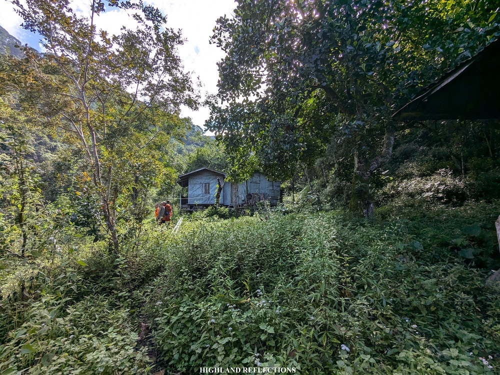 The last few portions of the cemented path almost meets with the waters of Kapanganan River. You’d know this trail would be unpassable if there was ever a storm or nonstop torrential rain! Just past this portion was Apa Campsite (1,185+ MASL), also known as Camp 1, which we reached at 9:40 in the morning, after two hours and covering 4 kilometers of nonstop walking! The campsite had a hut and a makeshift homestay in its vicinity, complemented by a water source, where we refilled our bottles. We tried to rest here for a moment.