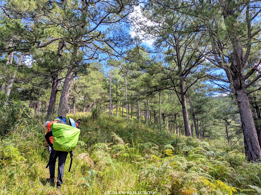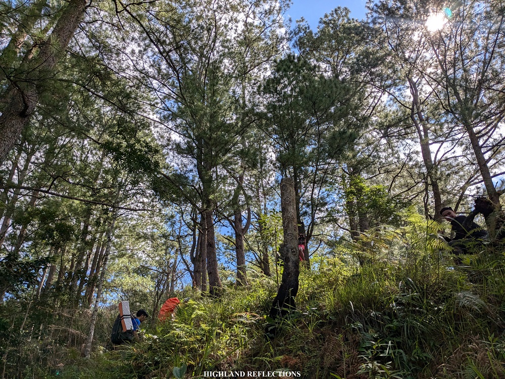 After breakfast, we started the final descent at around 11:30 in the morning. I was mostly in the middle group chatting with Ma’am Luz to pass the time. However, since I was also stopping by to take some photos, she went ahead, leaving me alone in the trail. After an hour, I reached the start of the Asoan Pine Forest trail, where I could spot Ma’am Luz and the lead group resting at a pine forest slope a hundred meters below me. Good thing was that they were resting and taking pictures, so I had the time to catch up to them.