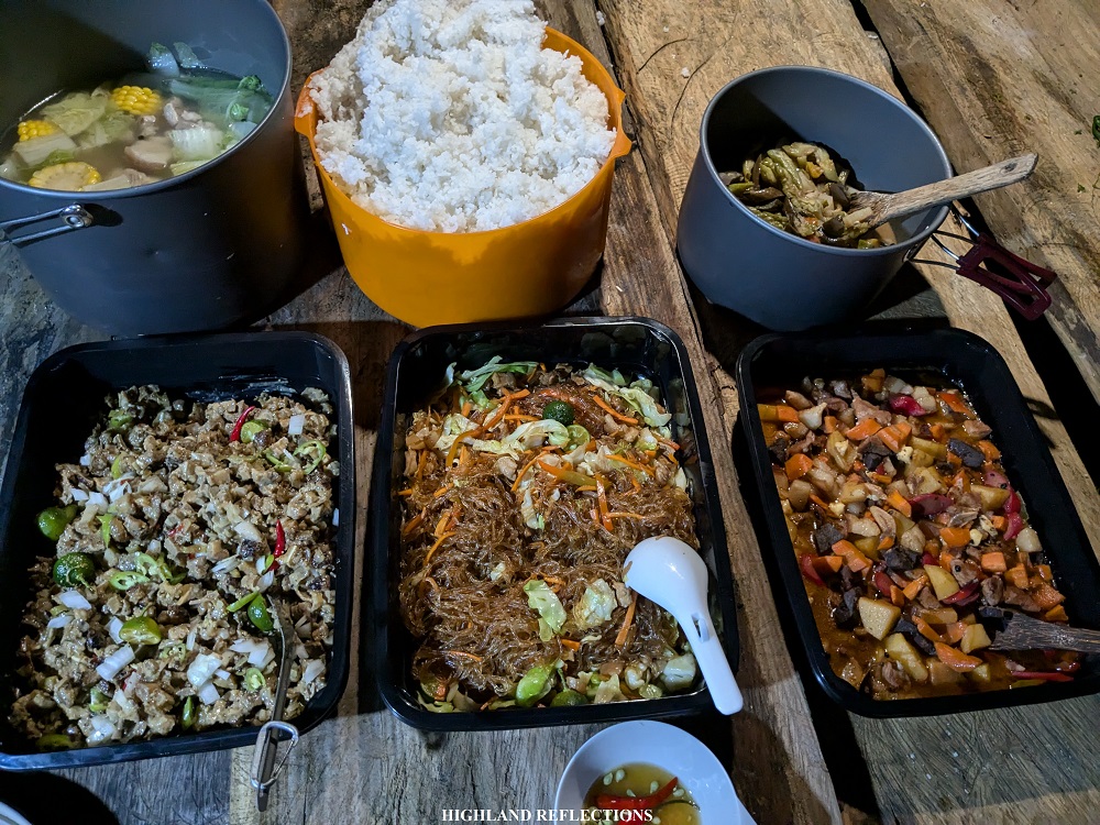 At 7 in the evening, we had our dinner consisting of sisig, menudo, pansit, nilagang baboy, and pinakbet. We stuffed ourselves with these hearty food – a much-deserved treat after an arduous first day! Afterwards, I tried having socials with Rochelle, Khael, Rainer, and Edward. We rested for the summit assault afterwards.