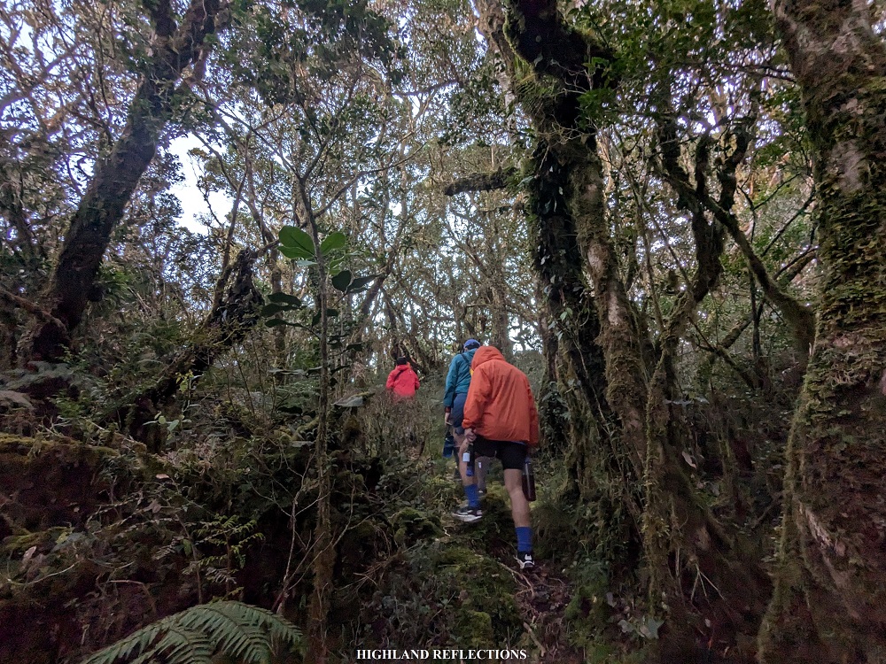 After gaining almost more than 500 meters of elevation and spending two hours with the rest-climb routine, we were welcomed by a thick undergrowth, marking the entrance to the mossy forest (1,730+ MASL). It was twelve noon. This was such a welcome situation for us as we were now spared from the heat of the sun coming from the moderately exposed trail in the Asoan Pine Forest! I could feel our pace expediting for a little bit! I don’t even remember us resting at this point.
