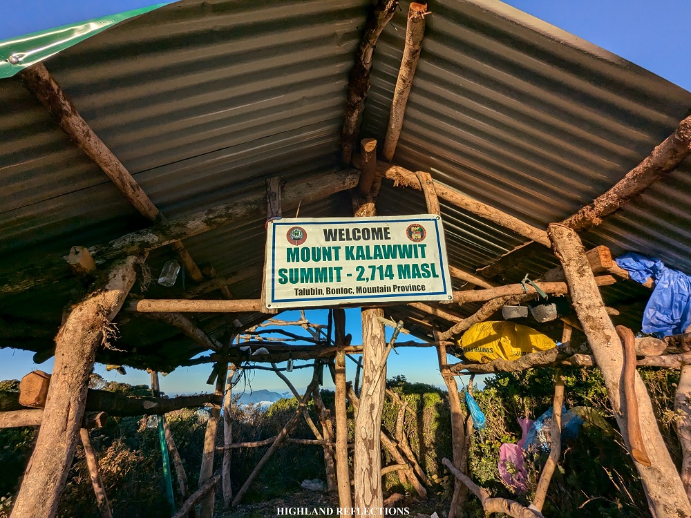 At 6:20 in the morning, after less than three hours of climbing from Camp 2, I finally reached the summit of Mt. Kalawitan! From the mossy forest, I emerged at the rear portion of the summit, where a makeshift waiting shed and viewing platform was present, complete with a signage inscribed with the words “Welcome Mt. Kalawwit Summit – 2714 MASL, Talubin, Bontoc, Mountain Province.” A few meters away from this waiting shed is what is considered as the “front part” of the summit where the summit marker and the iconic tree is located. As I was the first to arrive at the summit, I climbed the iconic tree and enjoyed the view of sea of clouds panorama from up there! One by one, my companions arrived. I had my pictures taken atop the tree.