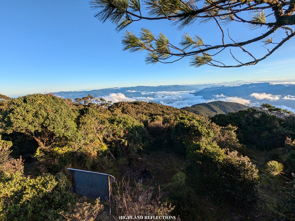 To the left of Mt. Pulag, which was nearer from our perspective, was the venerable Mt. Napulauan in Hungduan, Ifugao, which I climbed back in 2019 (I am excited to return to this mountain some time soon). To the right of Mt. Napulauan is a nearer mountain dome, which I think is Mt. Kapiligan, one of the candidates to be one of the highest mountains of Luzon. Near Mt. Pulag, there was a peeking mountain slope behind Kapiligan. Upon tracing the mountain via Google Earth, this was most probably Mt. Tabayoc in Kabayan, Benguet, the second highest mountain of Luzon, which I am also planning to return to soon! To the right of Mt. Kapiligan was another near mountain which I can only assume was Mt. Molmog (also called Mt. Abao in geographical maps), another candidate to be one of the highest in Luzon and which I am planning to climb soon, as there seems to be guides in Bauko who have already summitted the mountain in the past. Shifting my view to the right, a faraway view of Mt. Timbak, the third highest mountain in Luzon, can be seen, although I wasn’t able to capture it in the photo above.