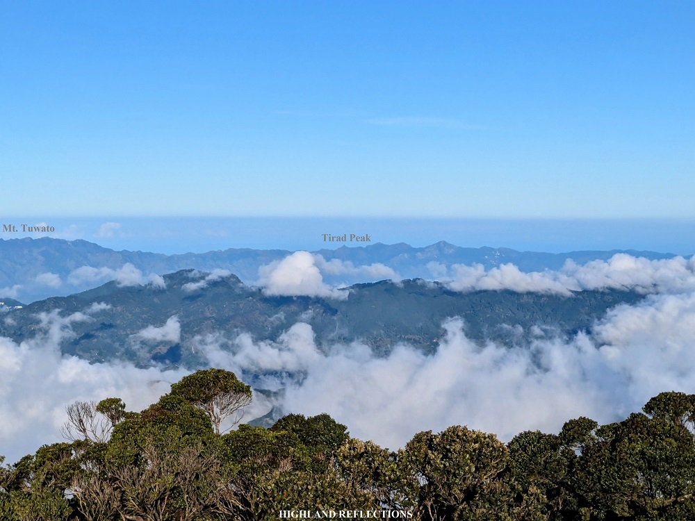 To the front of Mt. Pulag are several mountain domes that rise up above the sea of clouds as well. Now this was where I was unsure which mountain is which. What I am sure is that, since these mountains are up above the clouds, they are the highest mountains of Luzon together with Kalawitan and Amuyao. I can only try to infer from their relative positions compared to Mt. Pulag.