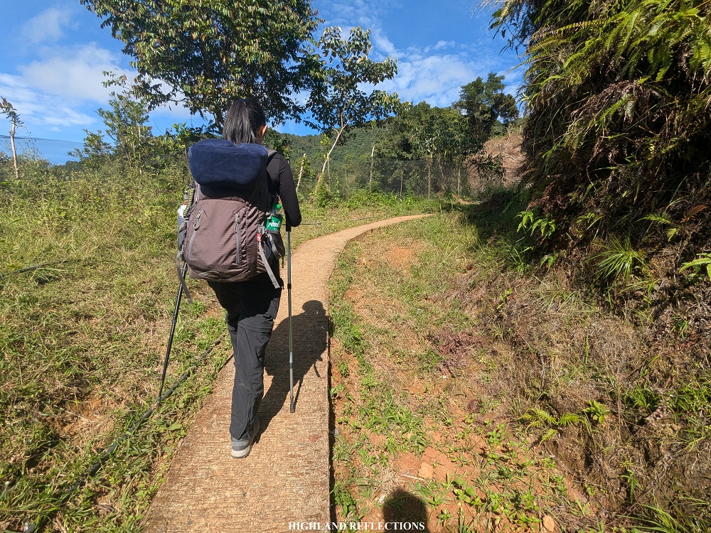 The trail starts at the rear part of the Kapangan National High School. The initial parts run on some cemented village pathways at the side of some residential houses and farmlands. Afterwards, we had to bear the brunt of the midday sunlight as we needed to ascend an exposed rocky road. We grabbed the opportunity to rest at some waiting sheds or some shaded parts of the road. Luckily, the road provided a beautiful panorama of the mountains near Kapangan.