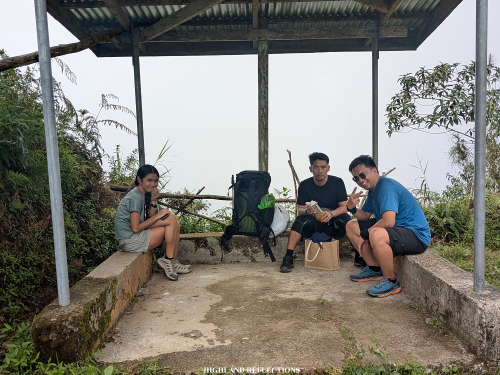 For this hike, we used waiting sheds as markers for the trail. The exposed rocky road had four waiting sheds. After the fourth waiting shed, the trail becomes a single-file path that runs on a ravine. Luckily, despite the trail being exposed, the afternoon fog covered the entire surroundings, saving us from the heat of the sun. After some rounds of uphill hiking, we encountered the fifth and sixth waiting sheds. Pat and I decided not to rest here and continue the climb. The surroundings here seem to be inside a closed canopy forest, with some trees and shrubs covered in thin moss.