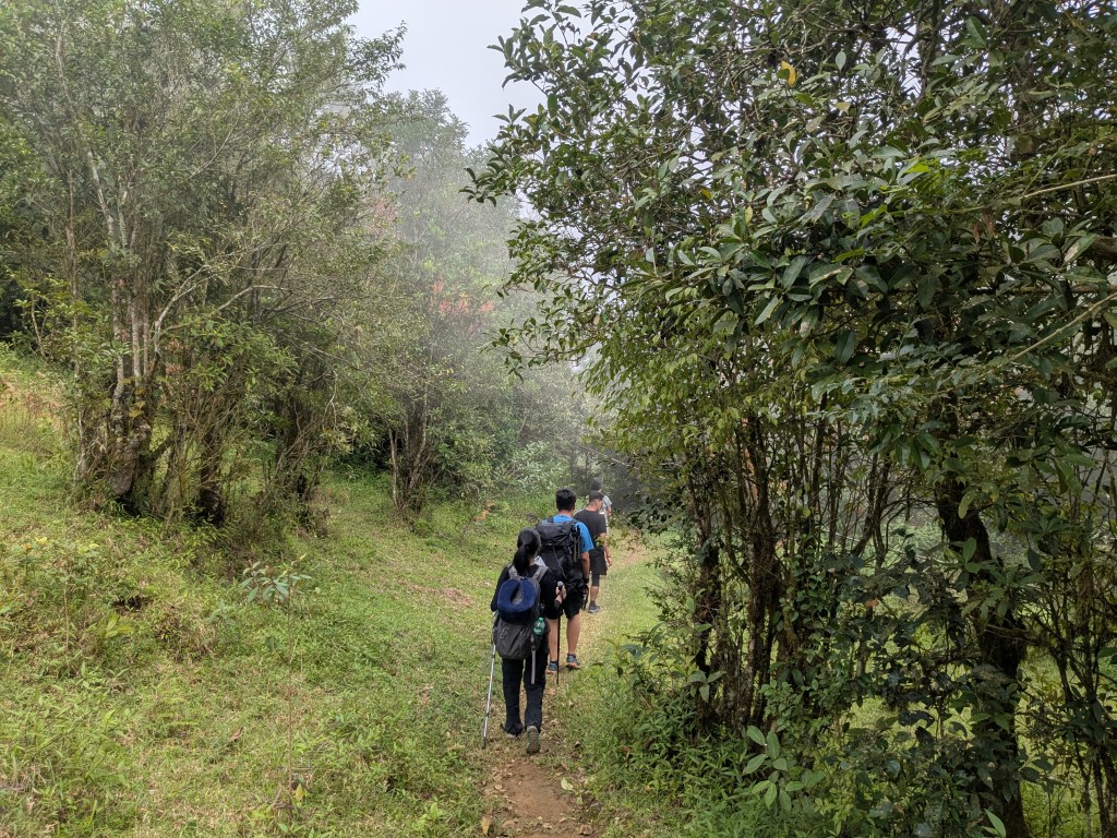 Our straightforward, nonstop descent was only broken by the curious cow that we encountered in the trail. Luckily, it wasn’t aggressive, so all we had to do was distract it while passing through. Then, we continued with our continuous descent, stopping by once or twice to munch on some snacks. We were back at the jump-off after two hours of continuous descent, where we were welcomed by a thick fog covering the entire community.