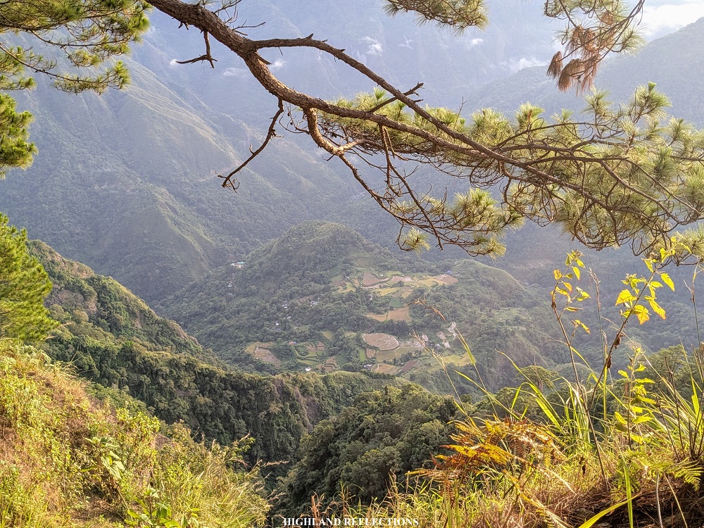 Just below us are some rice terraces and a small village. In the horizon are mountain ranges in the town of Atok. According to Sir Weisser, the summit of Mt. Pulag (or perhaps Mt. Timbak) is visible from this view point. In the southern direction, the rough layers of houses and buildings of La Trinidad can be spotted.