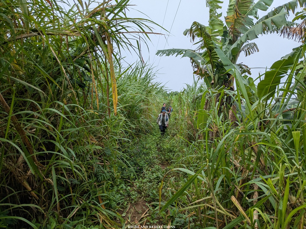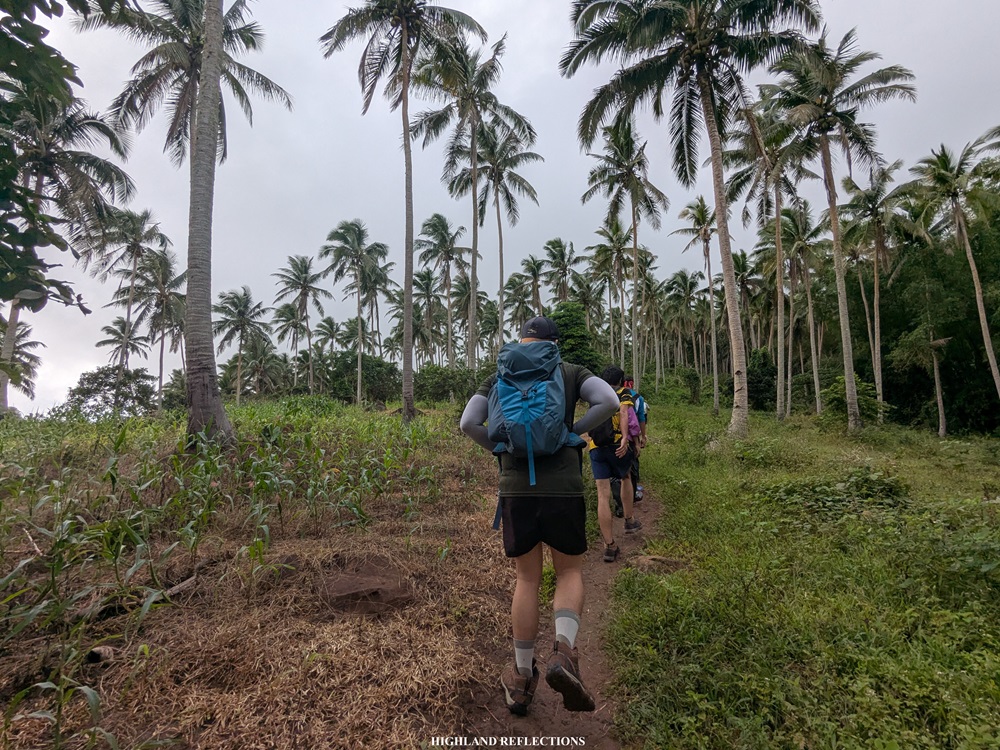 From the barangay hall, we entered into a trail at the side of the road where some residential houses are found. Past these houses is an area with an abundance of coconut and other fruit-bearing trees, where the trail can get extra muddy, as it is where horses and cows also pass through. We gradually gained elevation as we were taking this part of the trail. I can imagine how heavy the air would be if we took this trail under the heat of the sun.