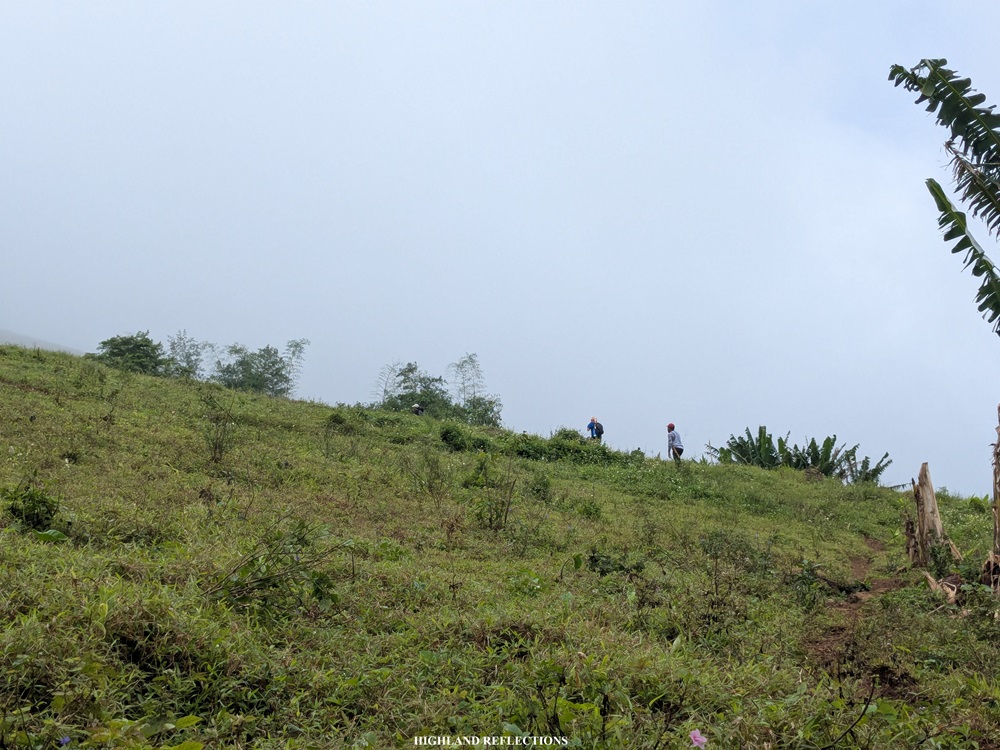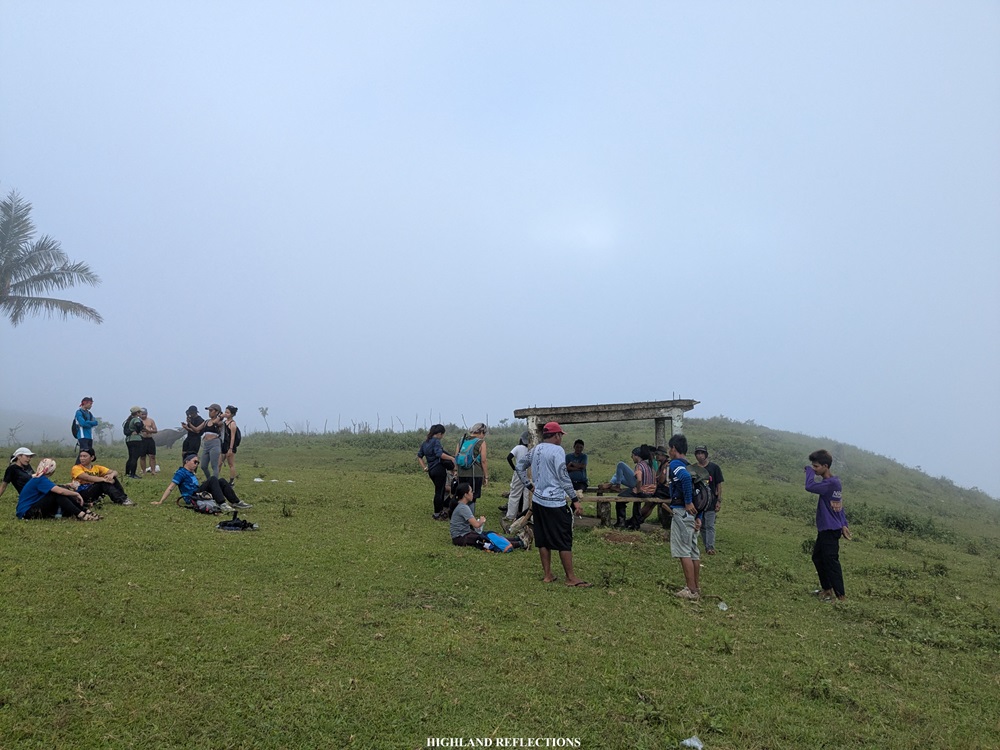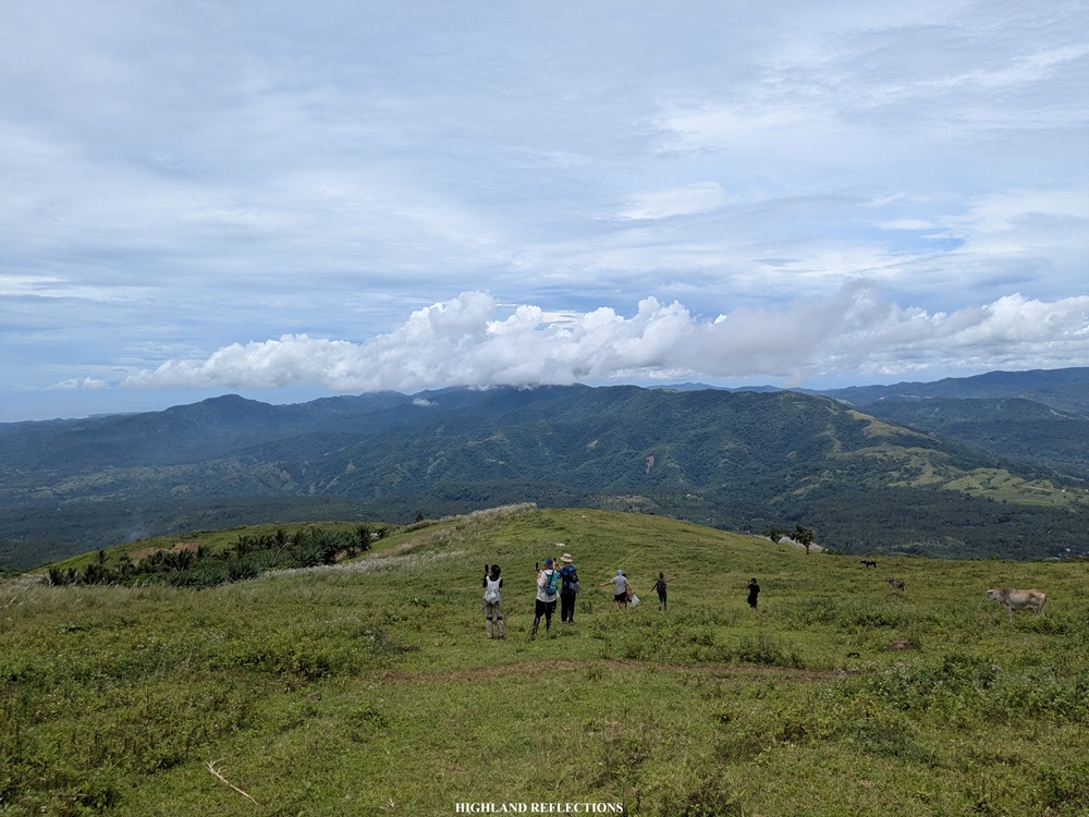 We, then, emerged into a grassland area. From the trail, we made a sharp left turn towards a steep pasture leading to a cemented waiting shed around 720 meters above sea level. All of us in the group took the chance to rest here after getting our legs shocked from the first 300+ meters of ascent! We were welcomed by military personnel manning the waiting shed. Since the hike permit from the barangay goes through them, we needed to seek their approval to push through with the summit assault, to which they did.