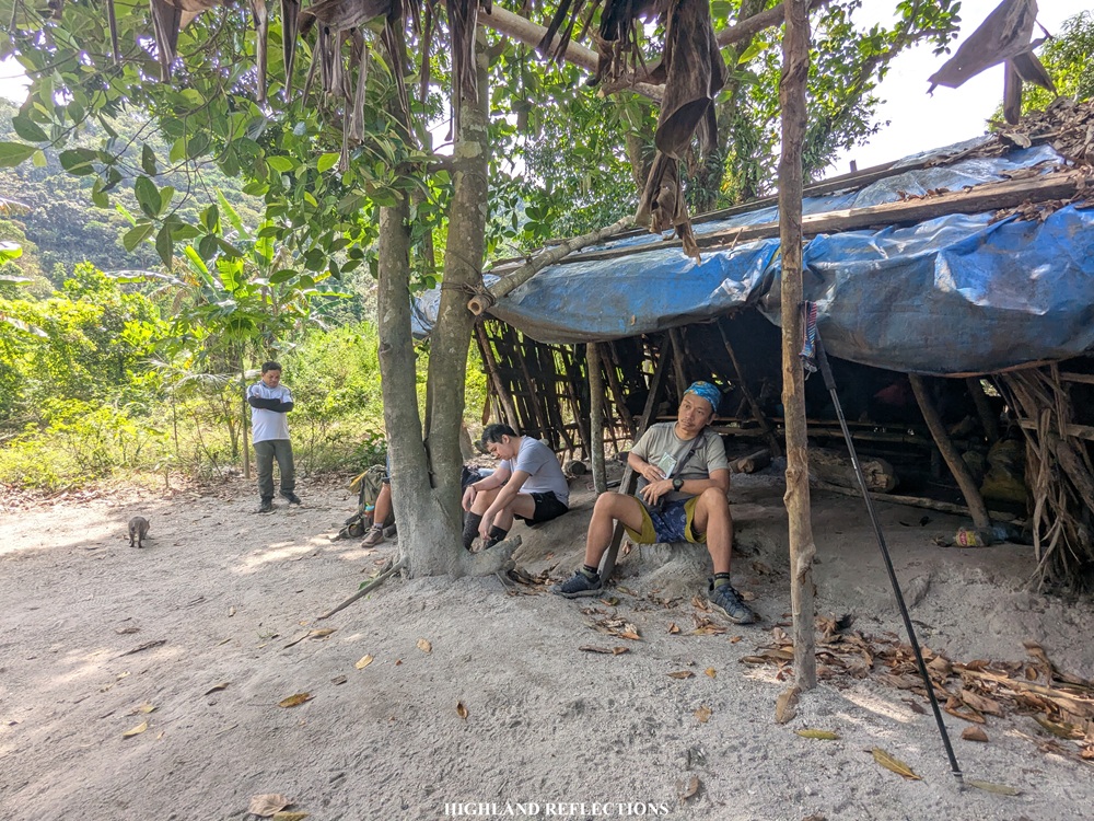 Past the ridge, we crossed the last river prior to the campsite and rested at an area with sleeping nooks made from an assemblage of dried leaves. It was around 1:30 in the afternoon. We took a long, well-deserved rest after getting punished by the gnarly trail inside the sagingan area. While resting, however, we found out that one of our companions was missing! Our lead Aeta guide—Tatay Roy—and his team had to search for our missing companion, prompting us to stand-by at the resting area for about three hours. Fortunately, our companion was found by Tatay Roy resting in Camp 1 after being lost in the sagingan area.