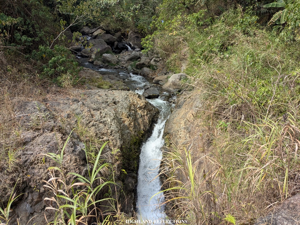 We needed the fuel from the coconut as the trail after the third house was where the trail started to be difficult. The trail continues inside a lowland forest until finally descending towards an exposed grassy slope. This descending trail continues inside a forest until finally reaching another river that we needed to cross. Given the somewhat long distance of the descent, we dreaded the thought of climbing this on the way back the next day! Past this river, we passed by the top of a waterfall and crossed another river before reaching Camp 1. It was 11:30 in the morning.